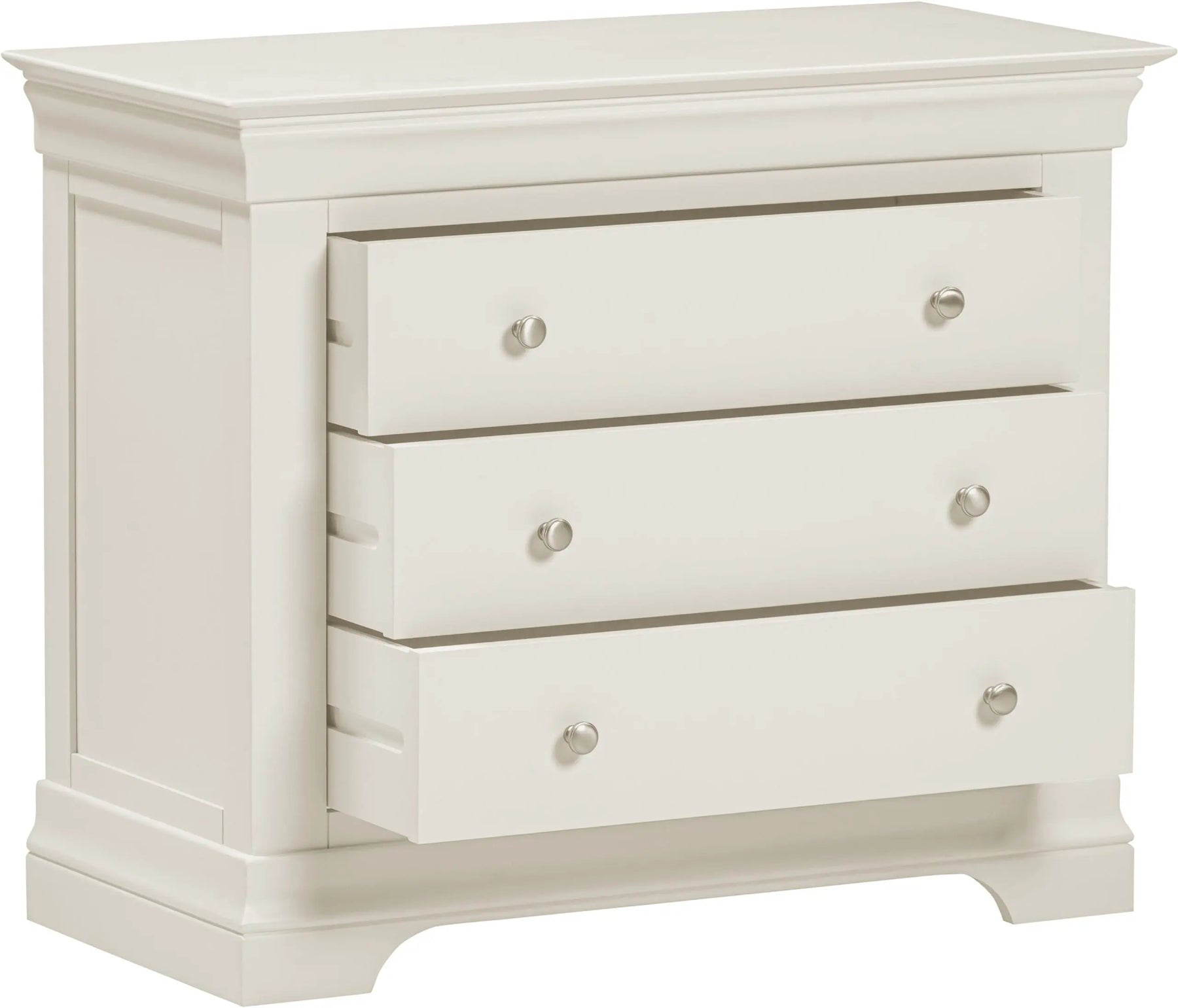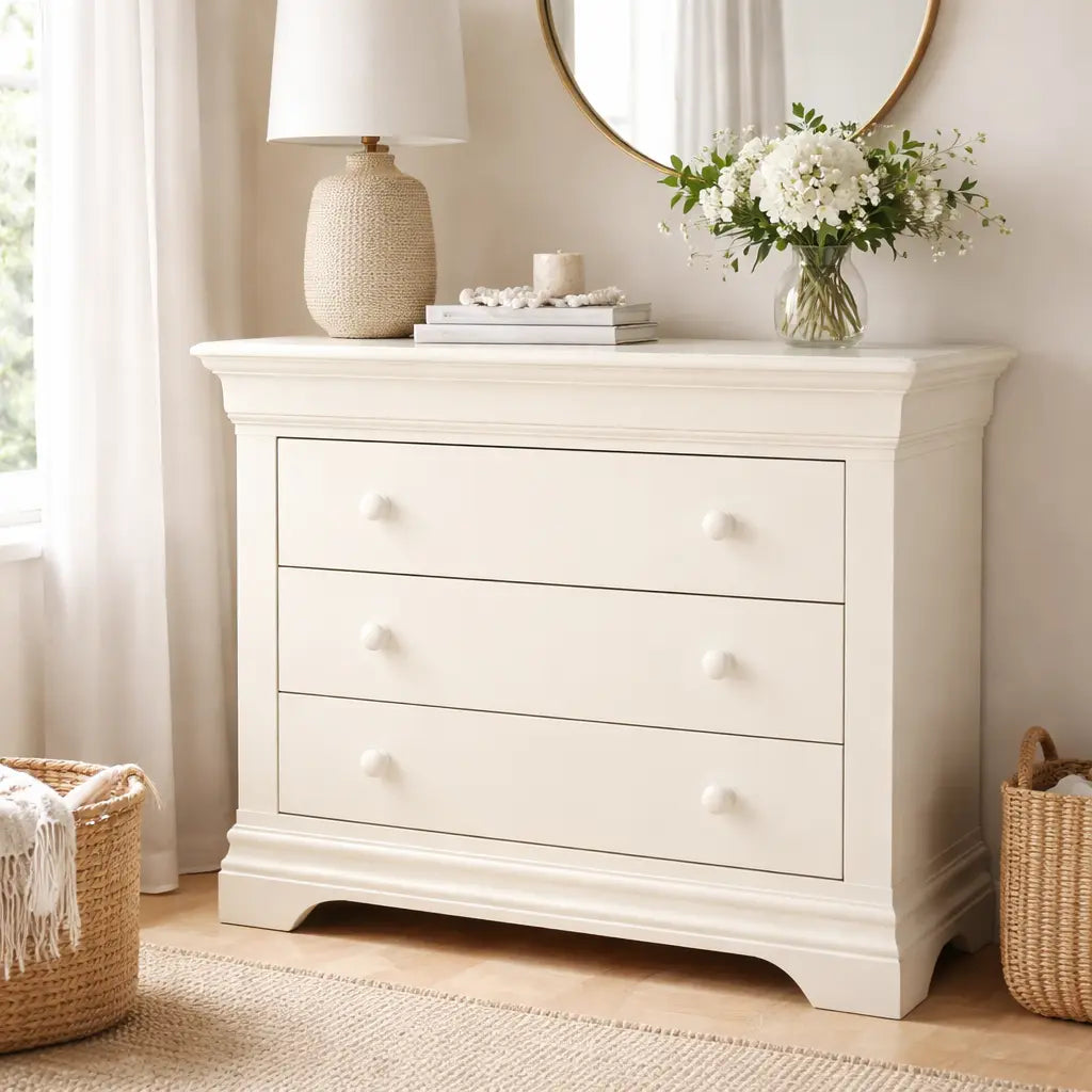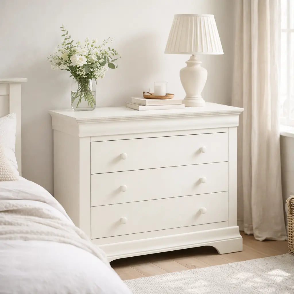 Add timeless style and practical storage to your bedroom with the Bordova 3 Drawer Chest in Ivory. Finished in a soft matt paint, this elegant chest of drawers brings a light, refined feel that suits both classic and contemporary interiors.