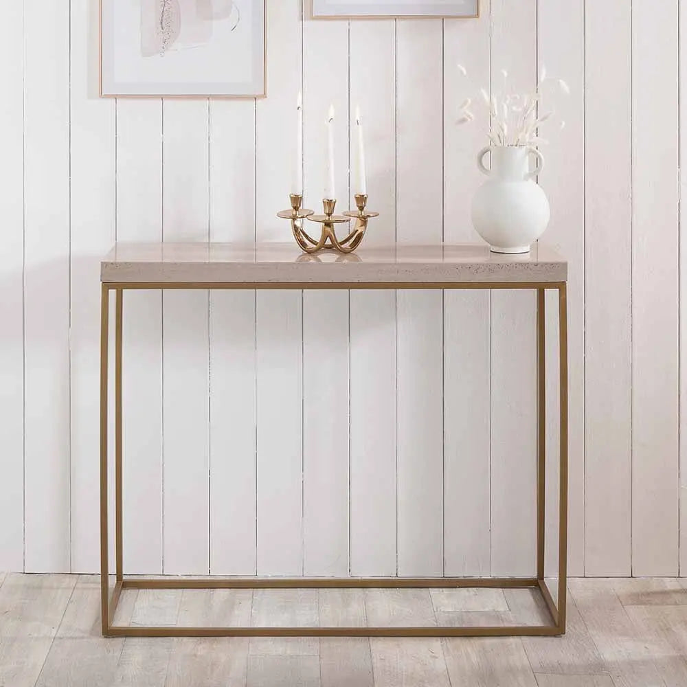 Madison Beige Granite and Burnished Gold Metal Console Table   Nicholas John Interiors