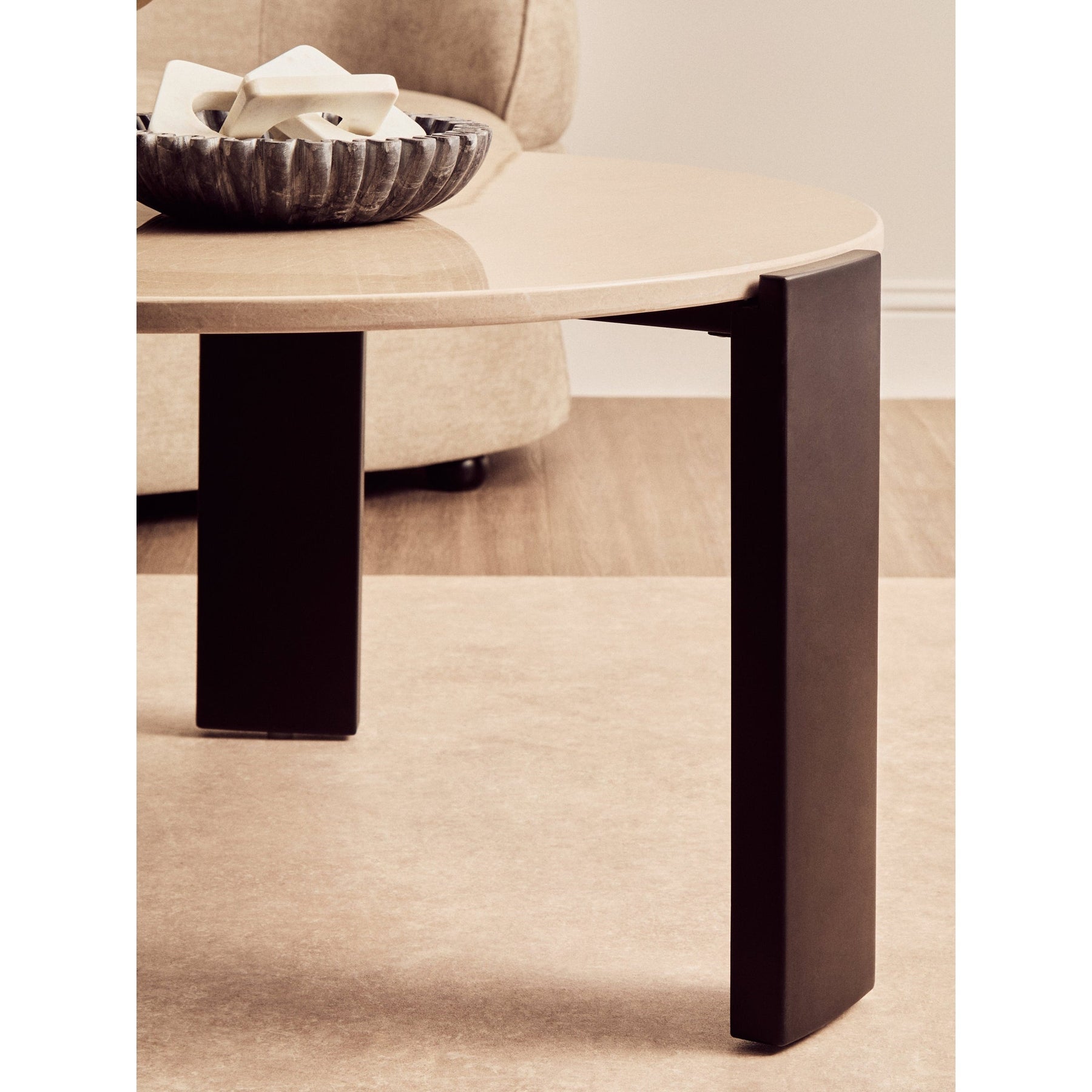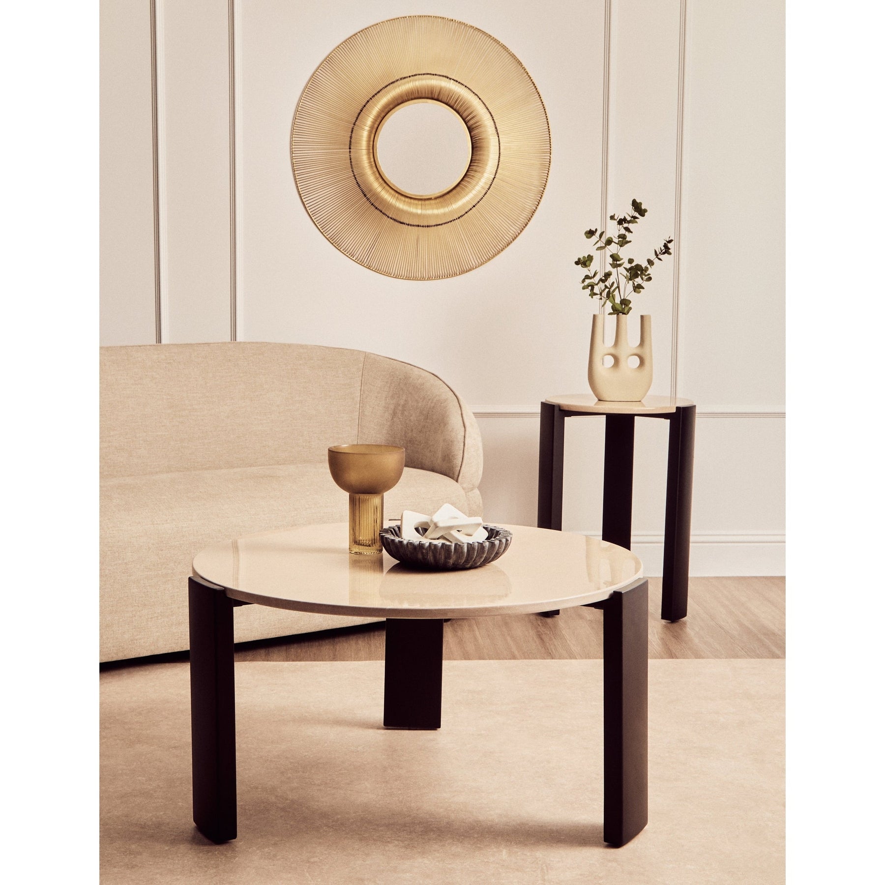 The Ravello Round Cream Marble Top Large Coffee Table blends modern elegance with timeless materials. Its smooth cream marble top adds a touch of luxury, while the sturdy black acacia wood legs provide strength and bold contrast. Generously sized, this monochrome coffee table offers ample surface space for entertaining, displaying décor, or everyday living. A refined focal point, it brings both practicality and style to contemporary interiors.