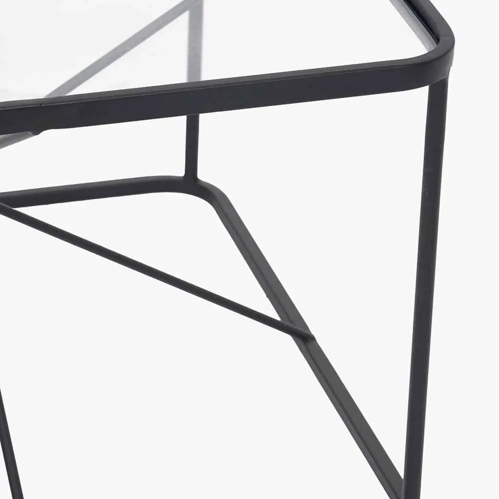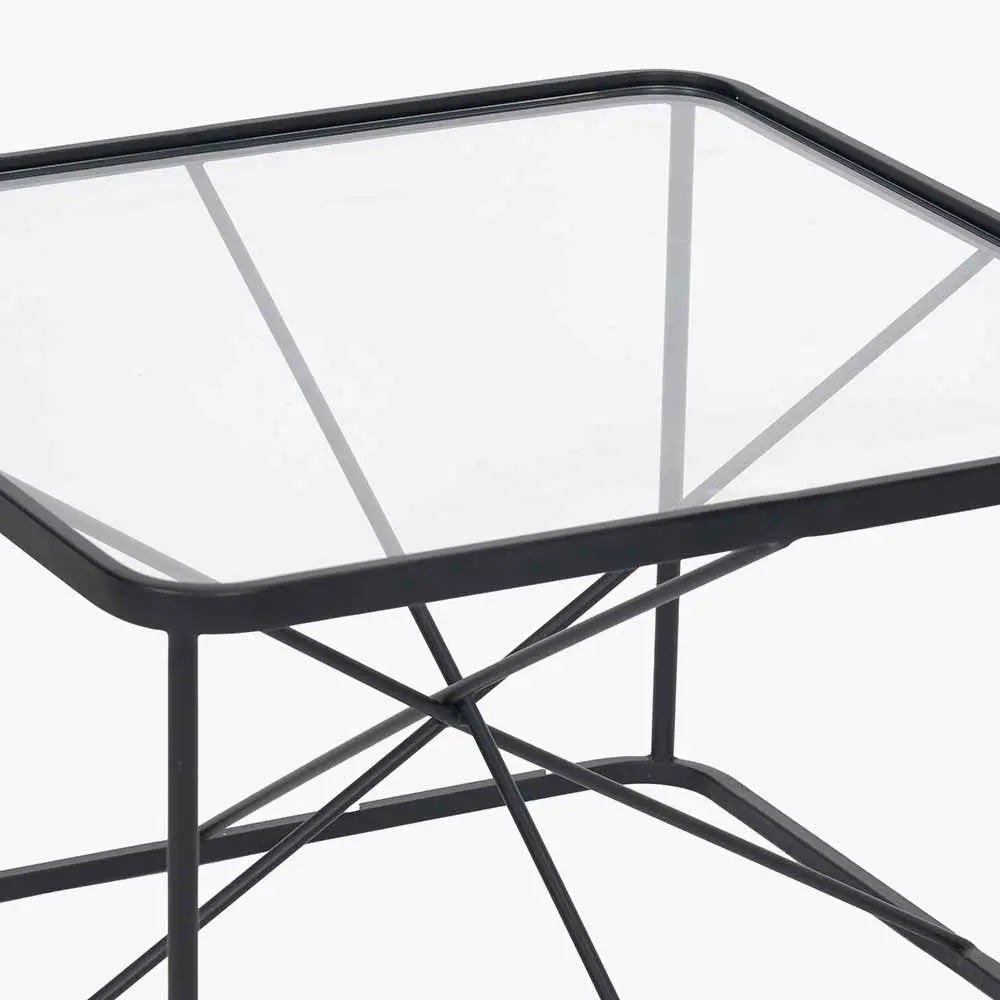The Roxy Glass and Black Metal Coffee Table brings contemporary style and architectural elegance to your living room. Featuring a striking star-like crossed black metal frame and a clear inset glass top, this coffee table creates a bold focal point while maintaining a sense of lightness and sophistication.