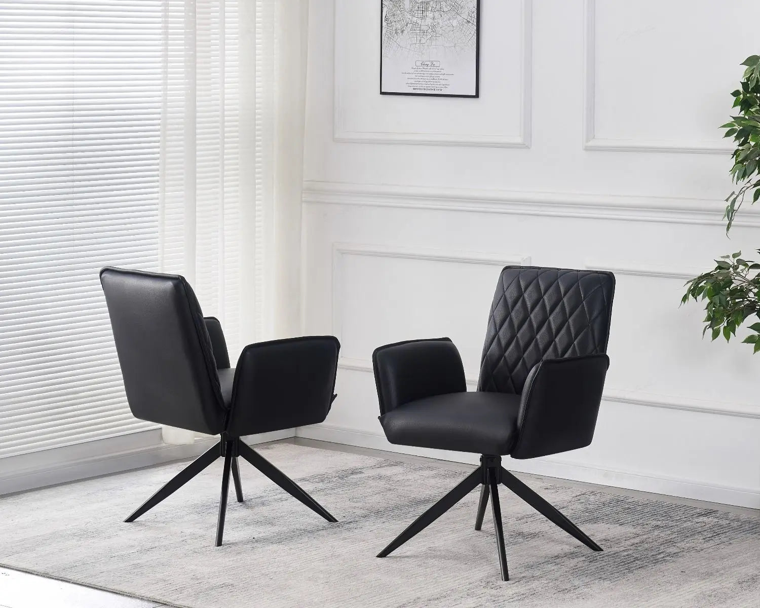 The Elan Chair in Black PU Leather combines sophisticated style with practical functionality, making it an elegant addition to any dining or living space. Its distinctive diamond-stitched backrest enhances both aesthetics and comfort, providing excellent support during meals or casual seating. The sleek black PU leather upholstery ensures a soft, durable, and easy-to-maintain surface, perfect for modern homes.