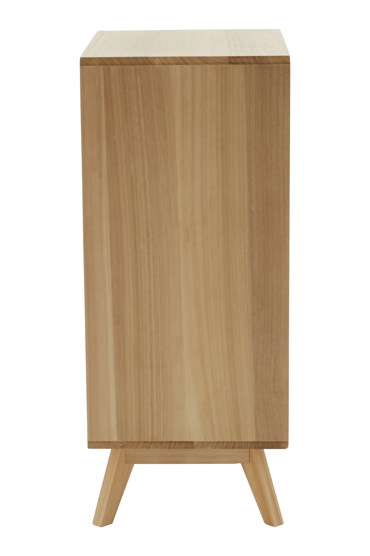 Supported by sturdy tapered wood legs, the Wilton Chest offers excellent stability and a timeless mid-century aesthetic. The angular design of the legs adds sophistication while complementing the overall sleek silhouette of the piece.