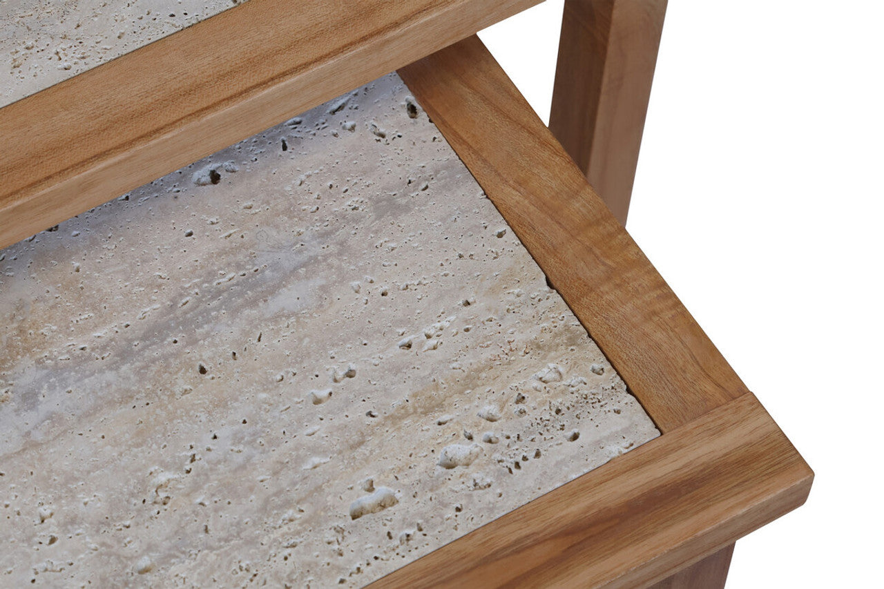 The Willow Large Set of 2 Wooden Side Tables combines natural elegance with functional design, perfect for contemporary and minimalist interiors. Each table features a travertine top, showcasing unique textures and subtle tonal variations that make every piece distinct. Supported by durable wooden frames, the tables offer a harmonious blend of organic beauty and practicality. The nesting functionality allows versatile use, whether arranged together or separately, making them ideal for living rooms, bedrooms, or lounge areas. With a minimalist silhouette, the Willow side tables seamlessly complement a variety of décor styles while adding sophistication and natural charm.