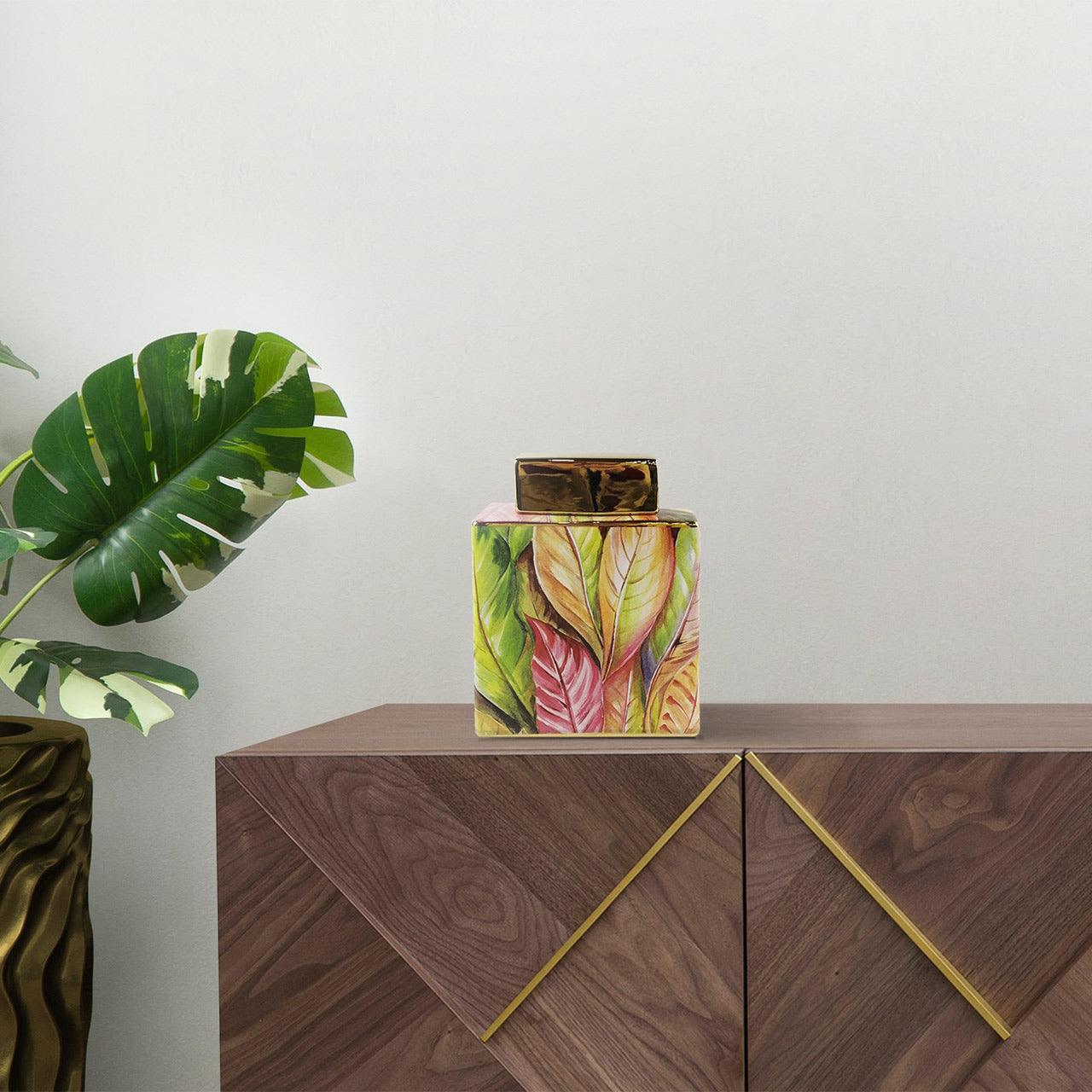 Add instant style to your home with the 25cm Green And Pink Leaves Ginger Jar. A versatile piece of home décor, the 25cm Green And Pink Leaves Ginger Jar balances decorative appeal with everyday practicality. Suitable for a range of interiors, it adapts seamlessly to different rooms and styles. A quick and effective way to enhance your home with design-led detail.