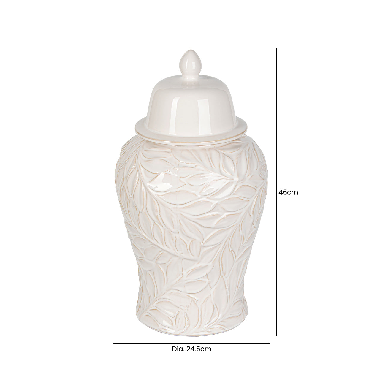 Enhance your interiors with the timeless elegance of our 46cm White Carved Ceramic Ginger Jar, a handcrafted piece that brings sophistication and charm to any home. Made from high-quality ceramic, this decorative jar features an elegant white finish enriched with intricate carved patterns that add beautiful depth and texture.