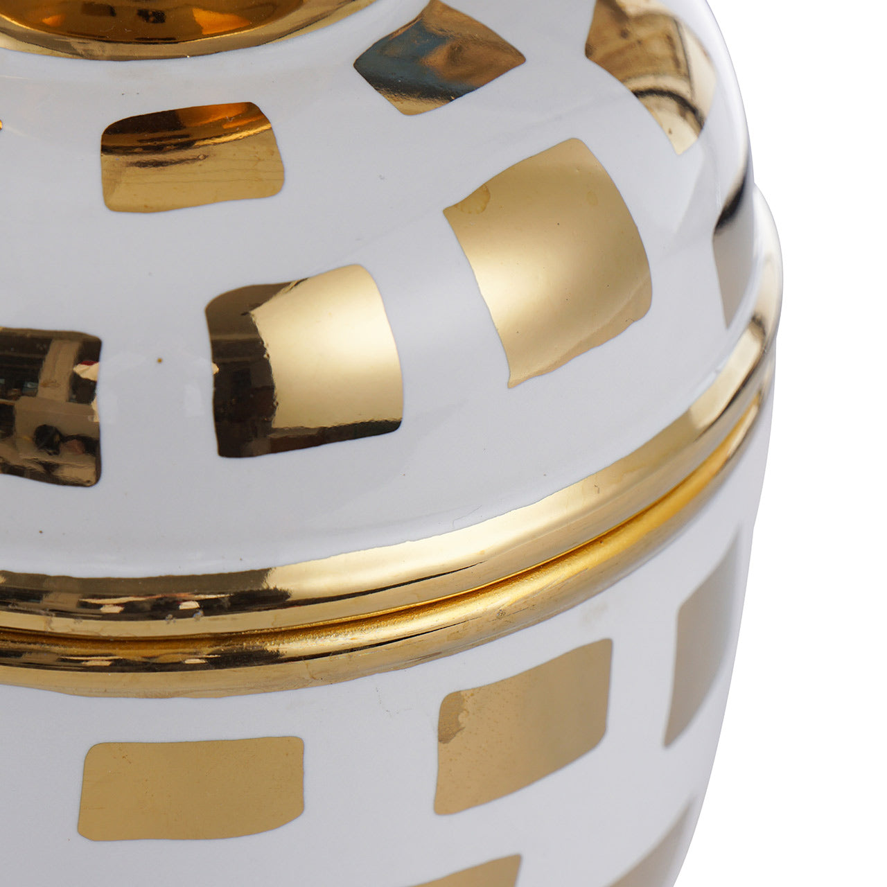 Durable, stylish, and effortlessly elegant, this white and gold ceramic ginger jar is the ideal choice for elevating your home décor with sophistication and grace.