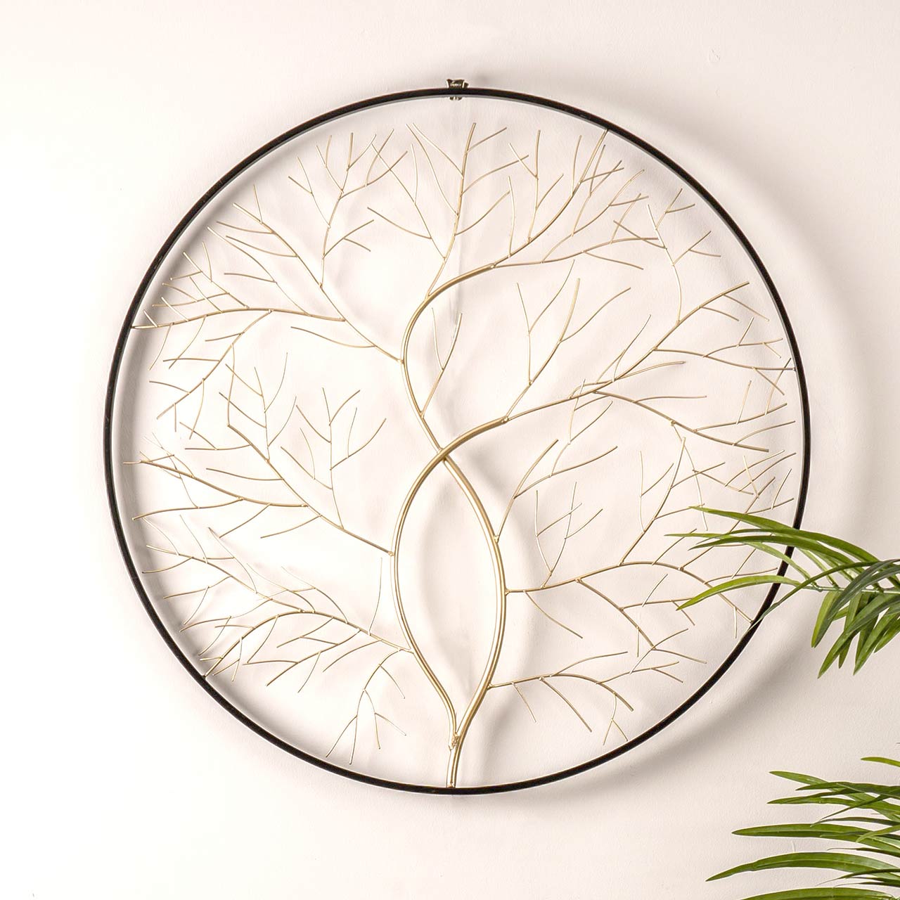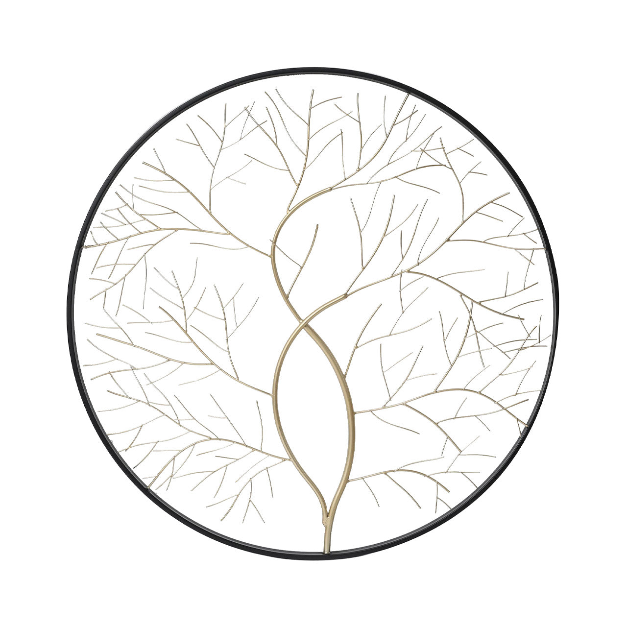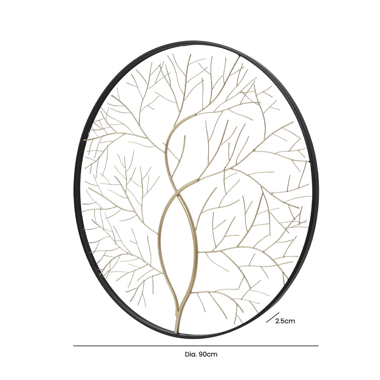 Large Black and Gold Round Metal Tree Wall Sculpture