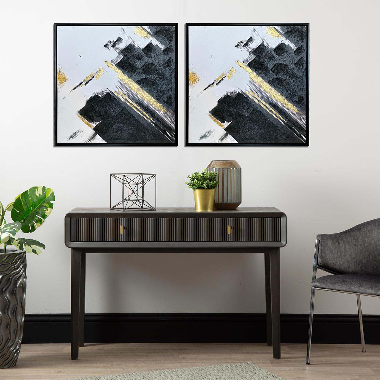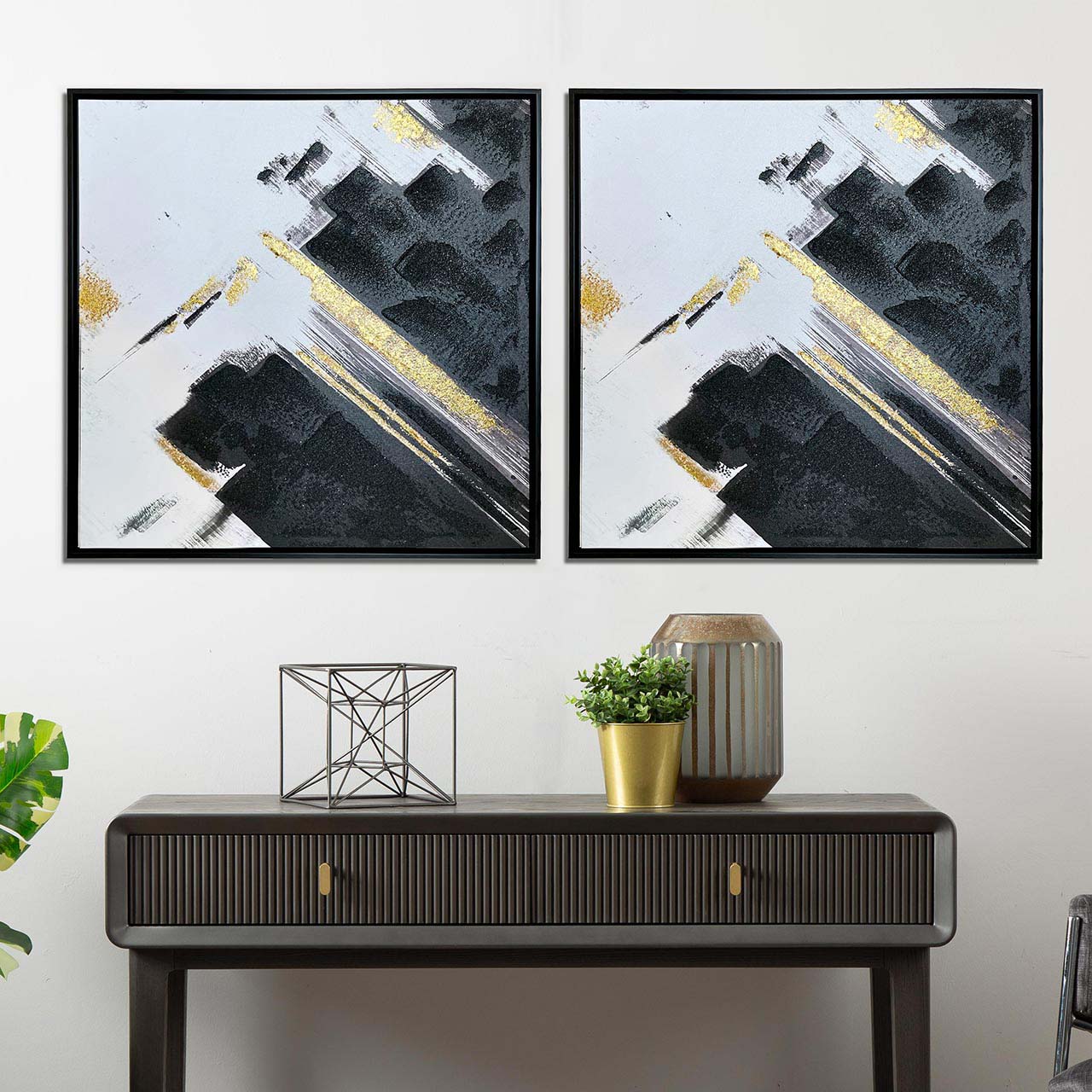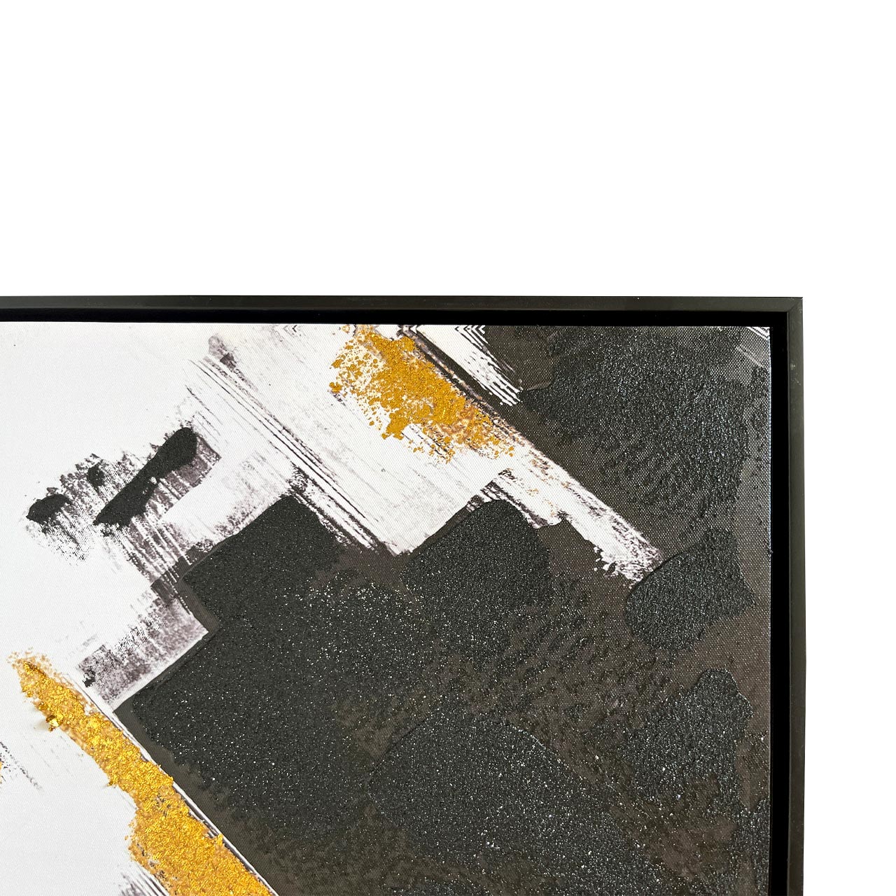 Black & White Abstract Canvas Wall Art brings modern sophistication and bold contrast to your décor. Featuring an expressive brushstroke design in black, white, and gold tones, this 63x63 cm framed canvas creates instant visual impact. Its balanced composition adds depth and texture, making it a statement piece for contemporary interiors.