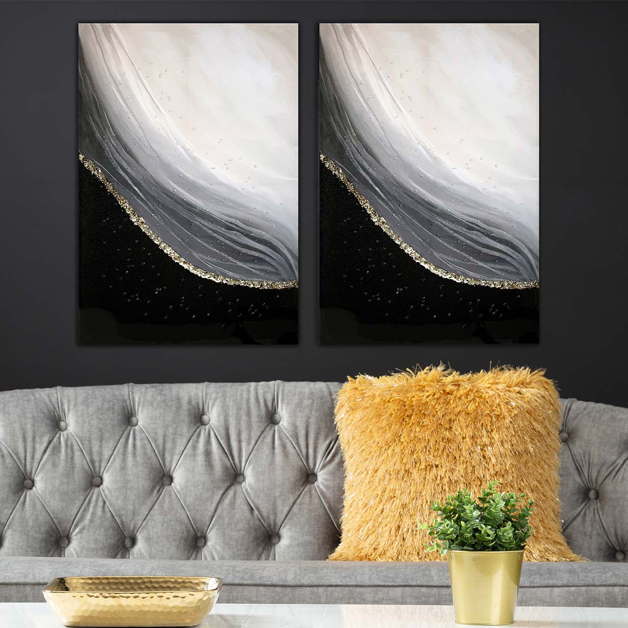 The Black, White & Gold Abstract Canvas Wall Art adds a luxurious and contemporary touch to any room. Featuring sweeping brushstrokes in soft white and grey tones contrasted with a rich black base and shimmering gold accents, this 80x120 cm piece brings depth, movement, and elegance to your walls.