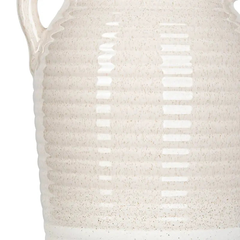 Beige and White Ribbed Ceramic Vase