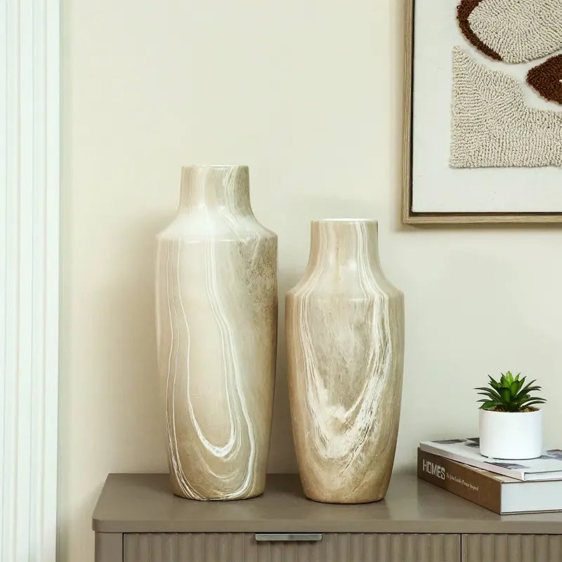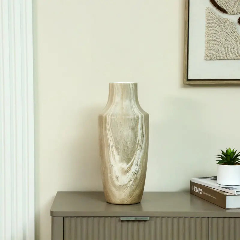 Perfect for displaying fresh blooms, dried arrangements, or as a standalone piece, this vase harmonises beautifully with modern, rustic, and neutral interiors. Its timeless design and earthy palette make it a versatile decorative accent that enhances the natural beauty of your home décor.