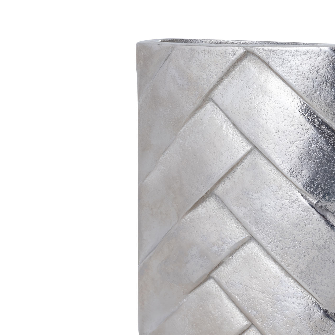 Bring contemporary sophistication into your home with the 22 cm Metal Vase in Nickel. Crafted from premium metal, this compact decorative vase showcases a stylish herringbone pattern with a smooth nickel finish that reflects light beautifully, adding subtle shine and texture to your space.