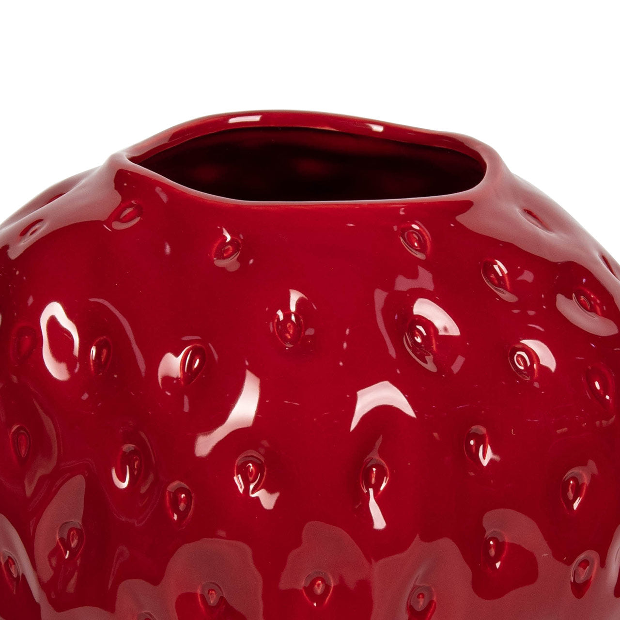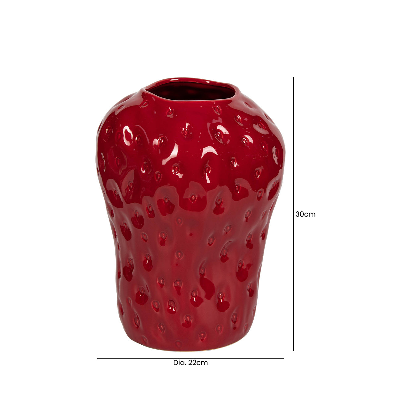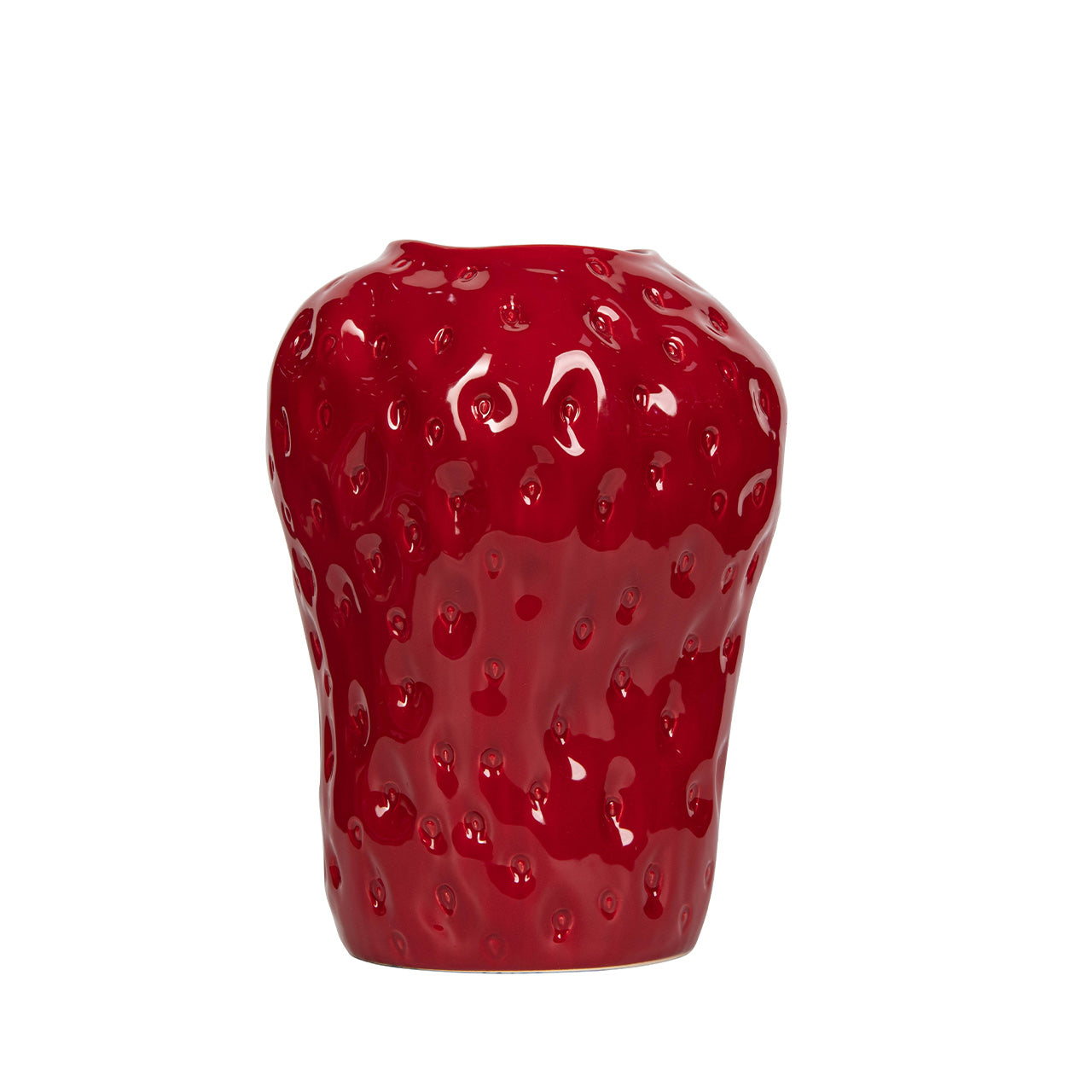 Add a bold pop of colour and personality to your décor with this Red Strawberry Ceramic Vase. Crafted with a smooth, glossy finish, the sculpted texture mimics the surface of a real strawberry, creating a playful yet sophisticated statement piece. Its vibrant red tone instantly draws attention, making it a perfect focal point in any setting.
