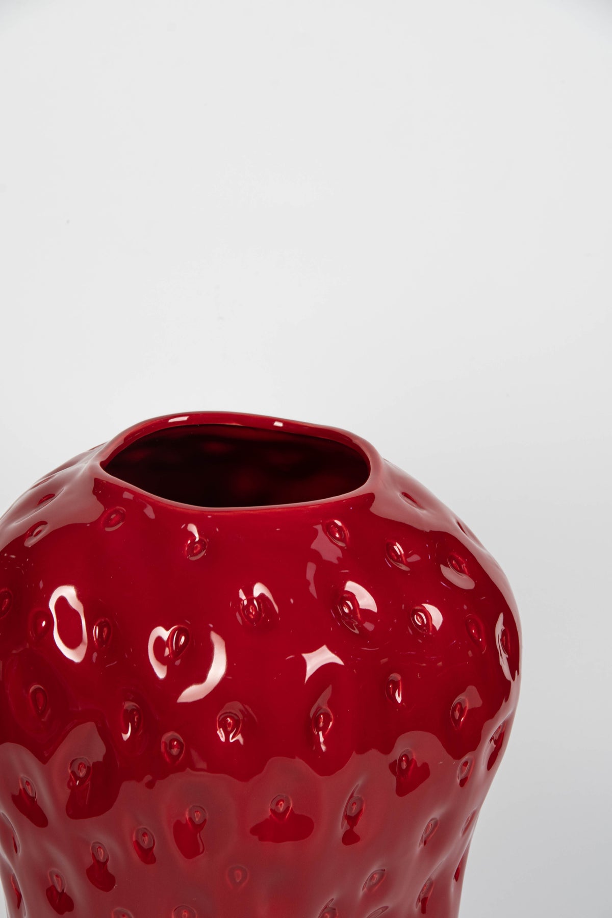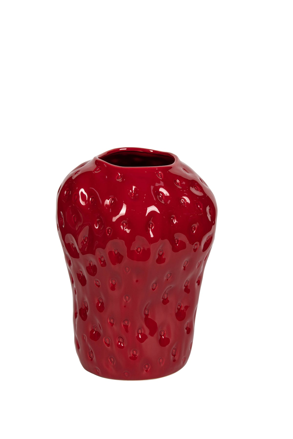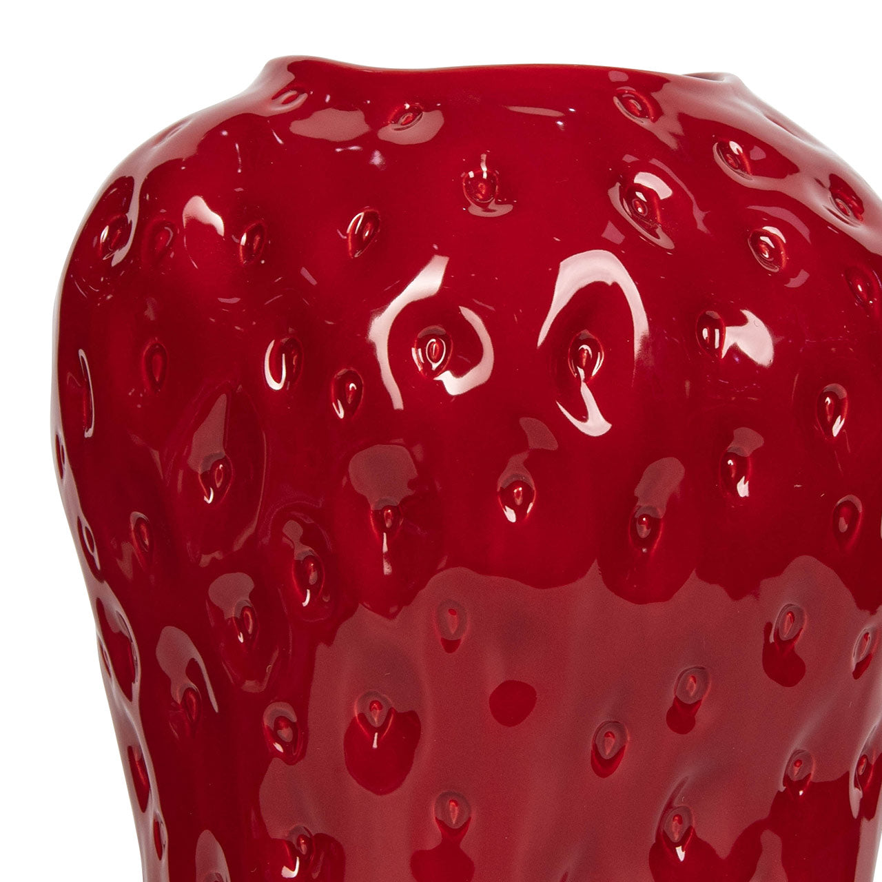 Add a bold pop of colour and personality to your décor with this Red Strawberry Ceramic Vase. Crafted with a smooth, glossy finish, the sculpted texture mimics the surface of a real strawberry, creating a playful yet sophisticated statement piece. Its vibrant red tone instantly draws attention, making it a perfect focal point in any setting.