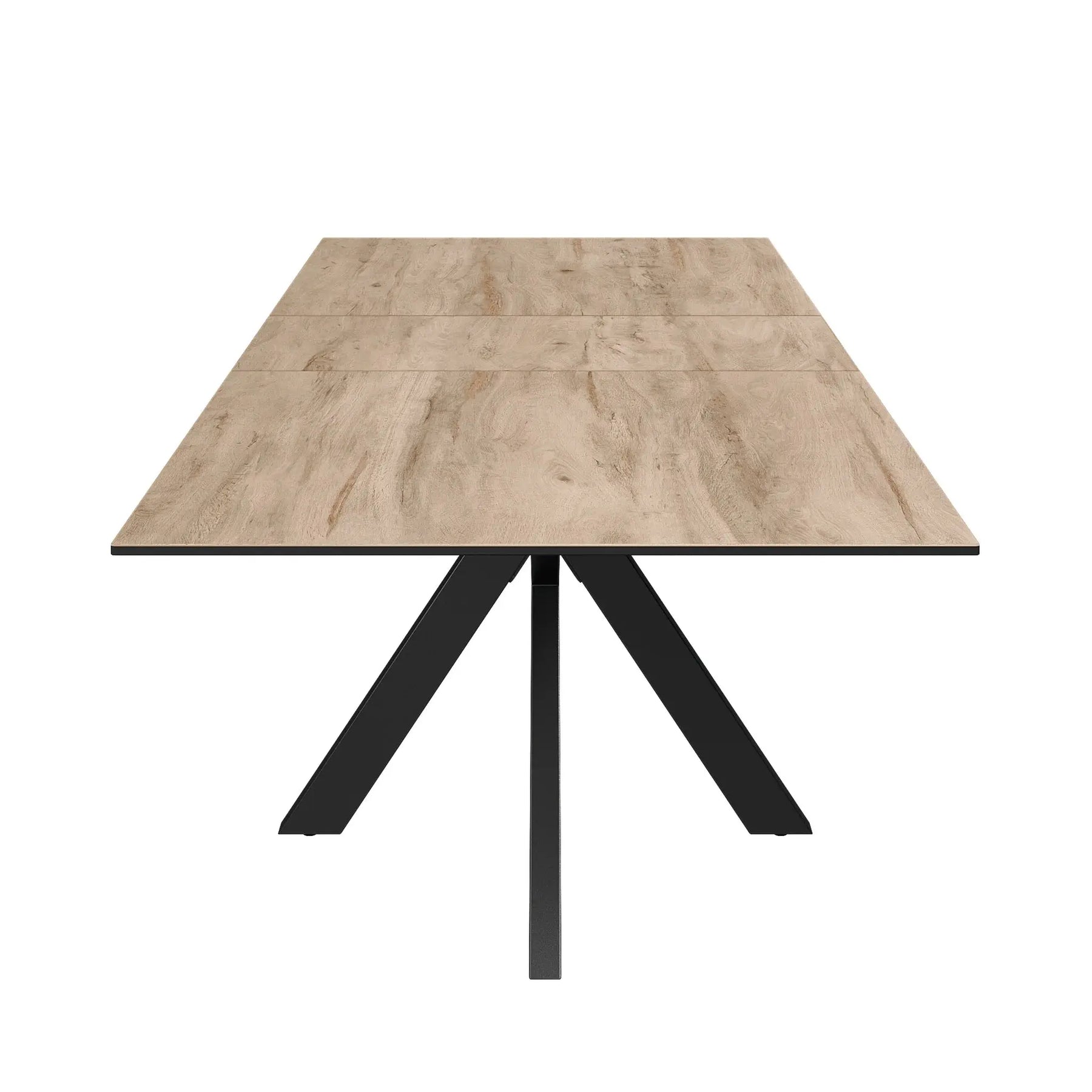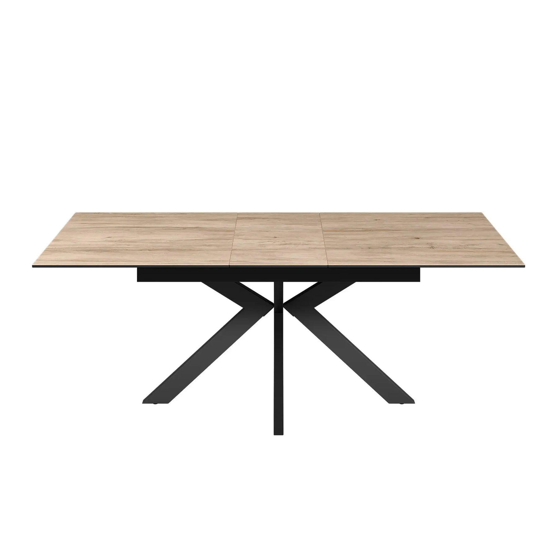 Designed for flexibility, the table features a smooth auto-rise extension mechanism, allowing it to extend effortlessly from 160cm to 200cm. This makes it perfect for both intimate family meals and larger gatherings. The sturdy dark grey cross-legged frame not only provides robust support but also adds an industrial-inspired style to complement modern interiors.
