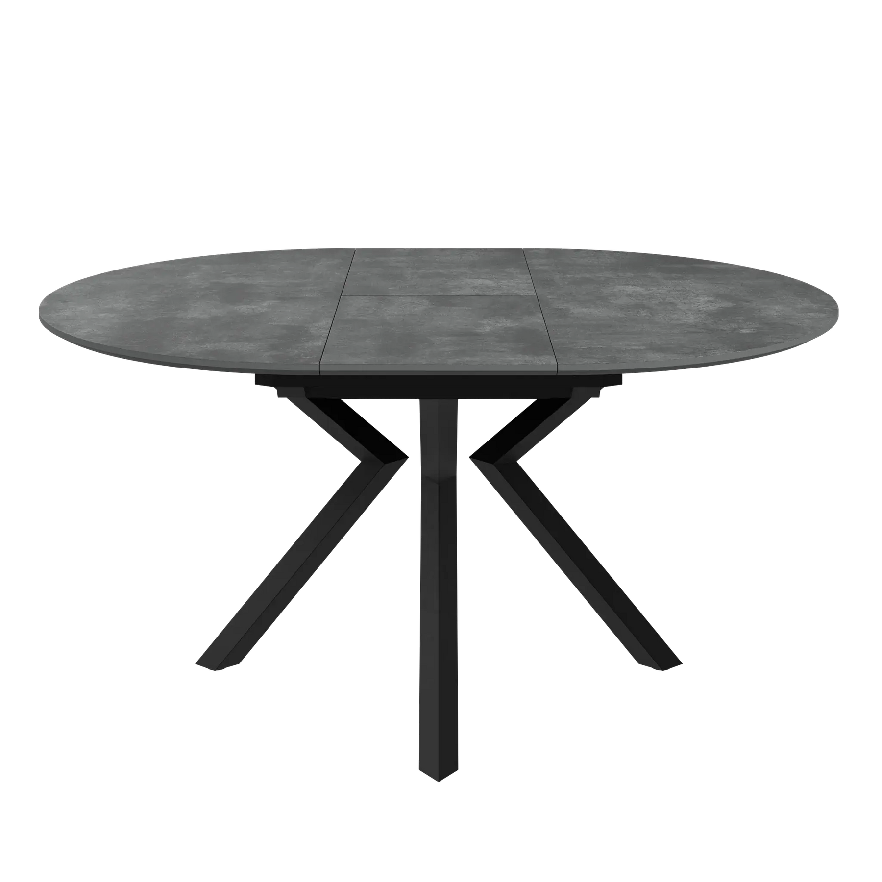 The sleek black steel legs provide stability while adding an industrial-inspired aesthetic, creating a bold yet timeless centrepiece for your dining room. Its extending design allows you to adjust the table length with ease, making it ideal for both everyday meals and larger gatherings.