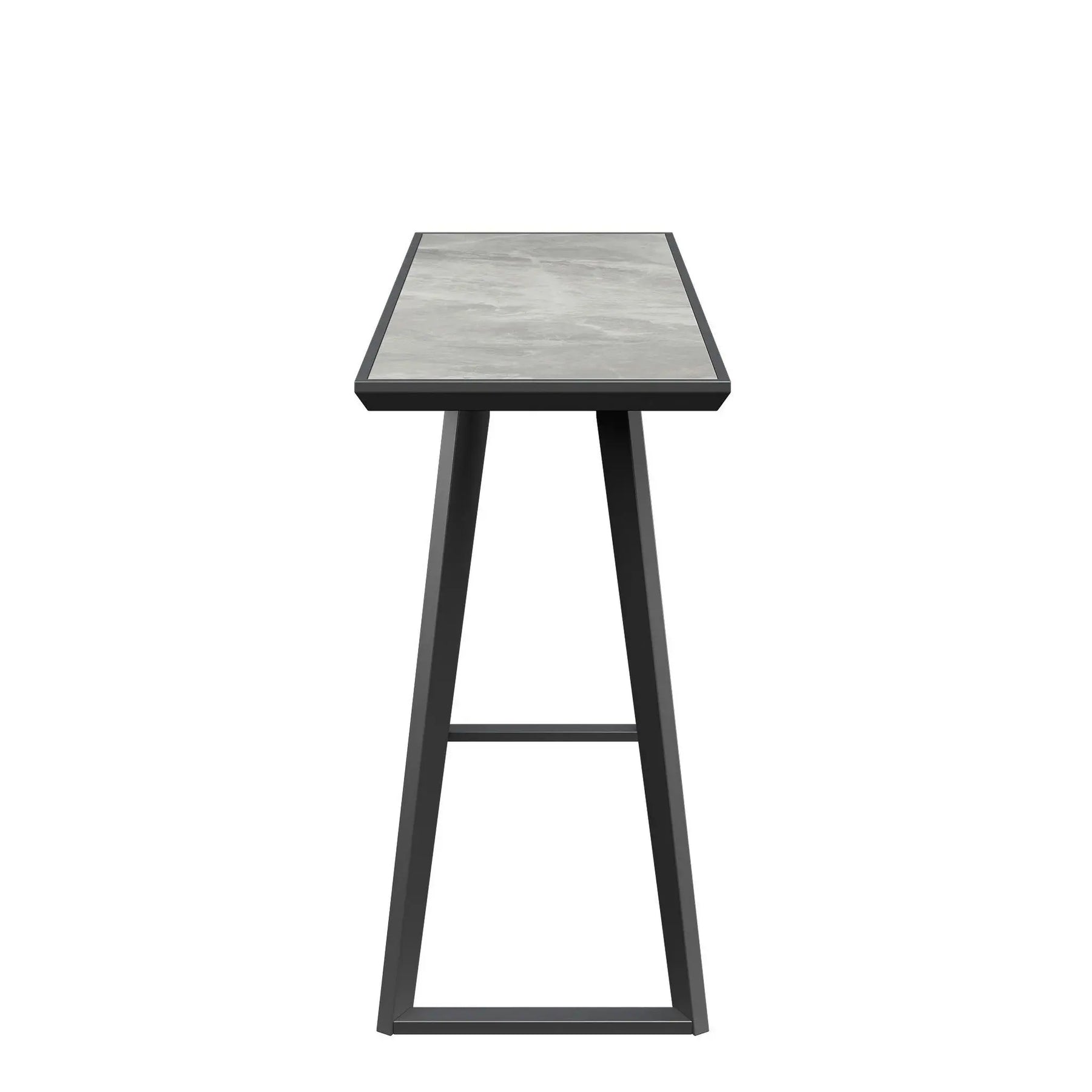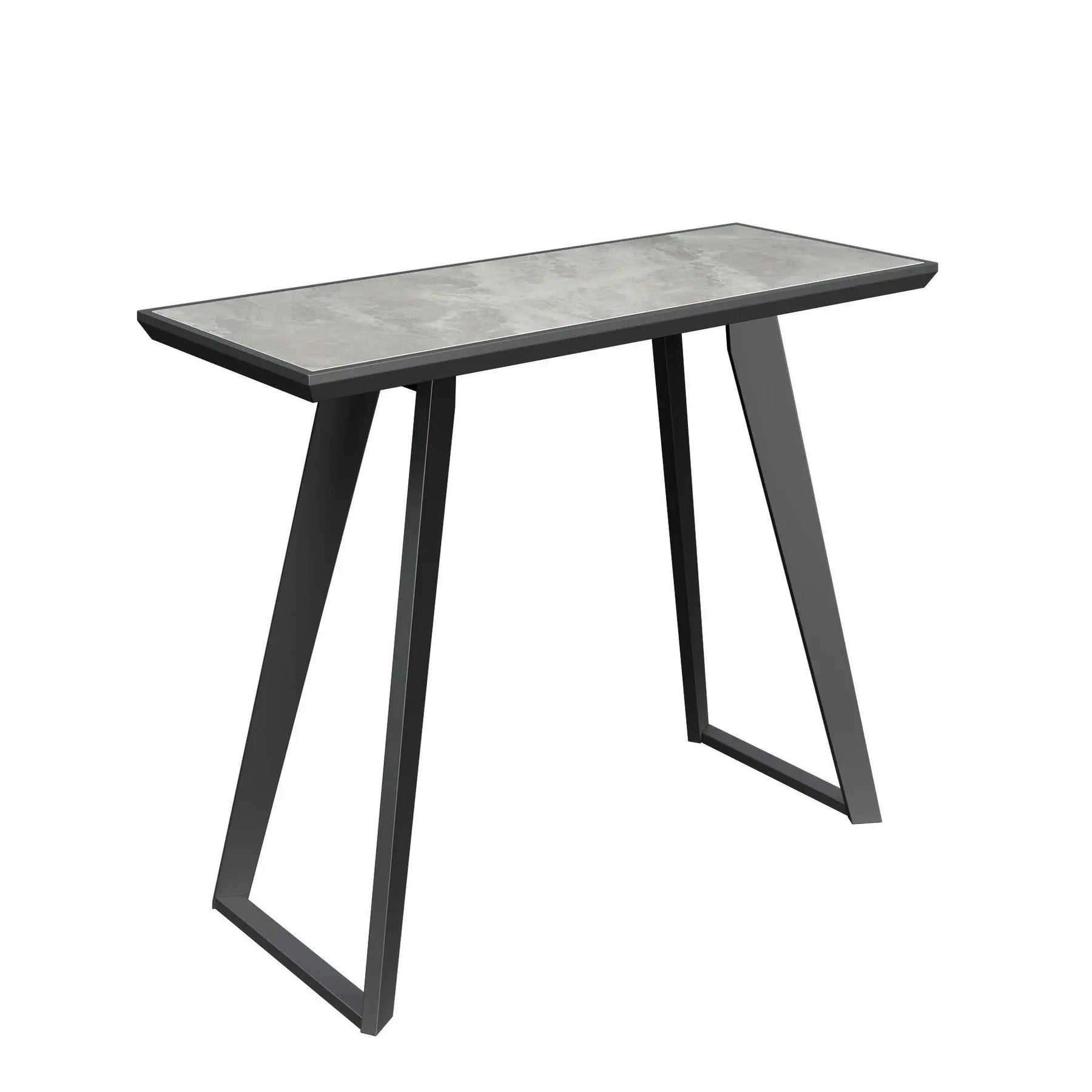 Elevate your interiors with the Sarento Grey Ceramic Console Table from the Sarento Collection – a seamless blend of elegance and modern design. Featuring a 6mm Gloss Grey Sintered Stone Ceramic Top with a refined beveled edge and a substantial 35mm thickness, this console table exudes sophistication. The sleek gunmetal grey angled legs not only provide a luxurious aesthetic but also ensure stability and durability.