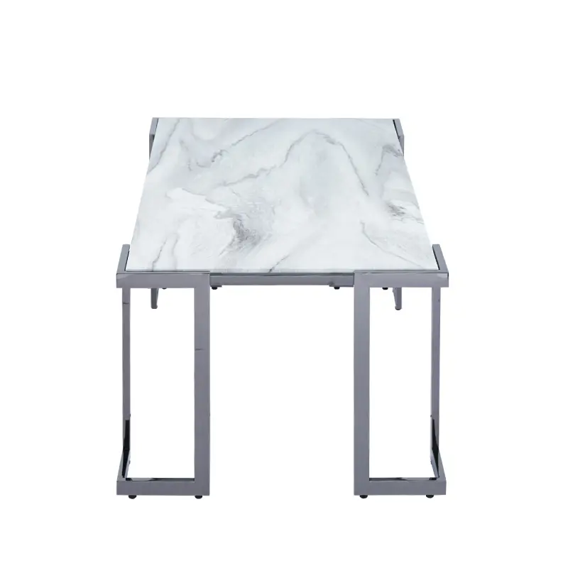 Sleek and modern, the Aamari Coffee Table pairs a refined grey gunmetal frame with a smooth white faux-marble glass top for a crisp, design-led finish. The open, architectural base keeps your living room feeling light and spacious, while the generous surface is perfect for trays, books and everyday essentials.
