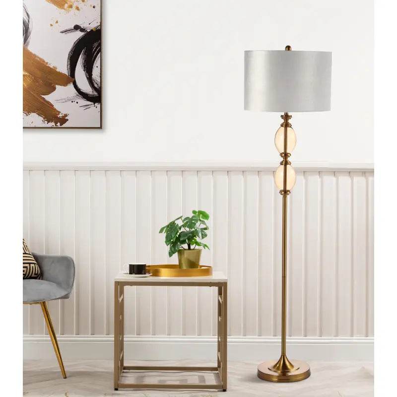 Illuminate your space with the Amber Brown Glass Floor Lamp with Cream Velvet Shade, a perfect blend of warmth, elegance, and contemporary design. The beautifully crafted amber brown glass base radiates sophistication, while the luxurious cream velvet shade diffuses a soft, inviting glow that enhances any interior setting.