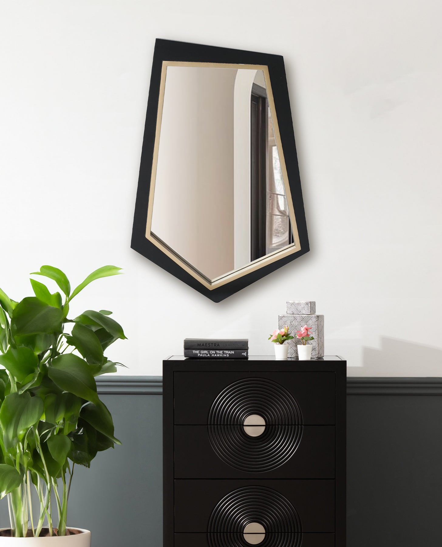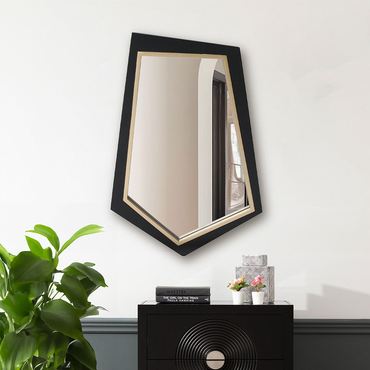 Add a touch of timeless glamour and contemporary style to your walls with the Black and Gold Wall Mirror.