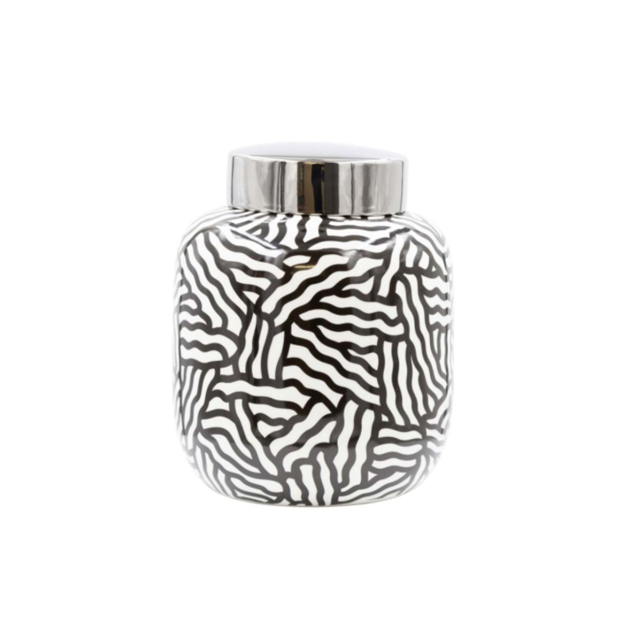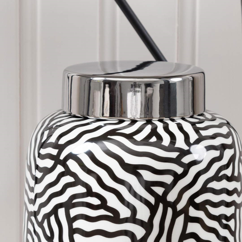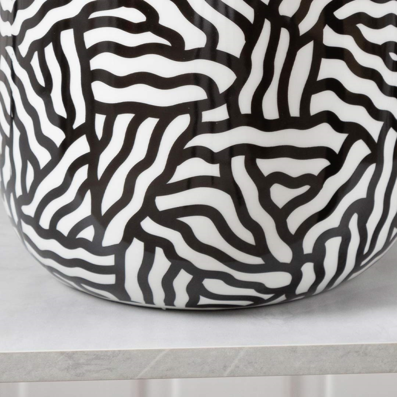 Add a crisp, contemporary note to your styling with this 26 cm Black & White Ginger Jar. The bold monochrome palette and refined silhouette create an eye-catching accent that works beautifully on shelves, sideboards and mantels, complementing both modern and classic interiors.