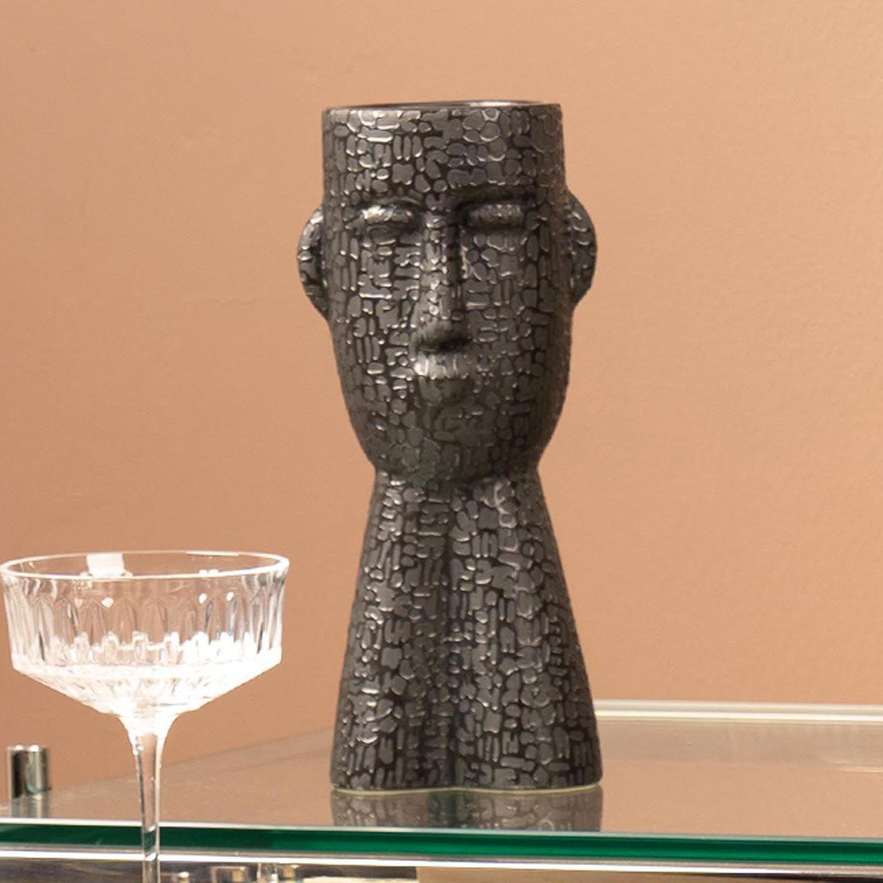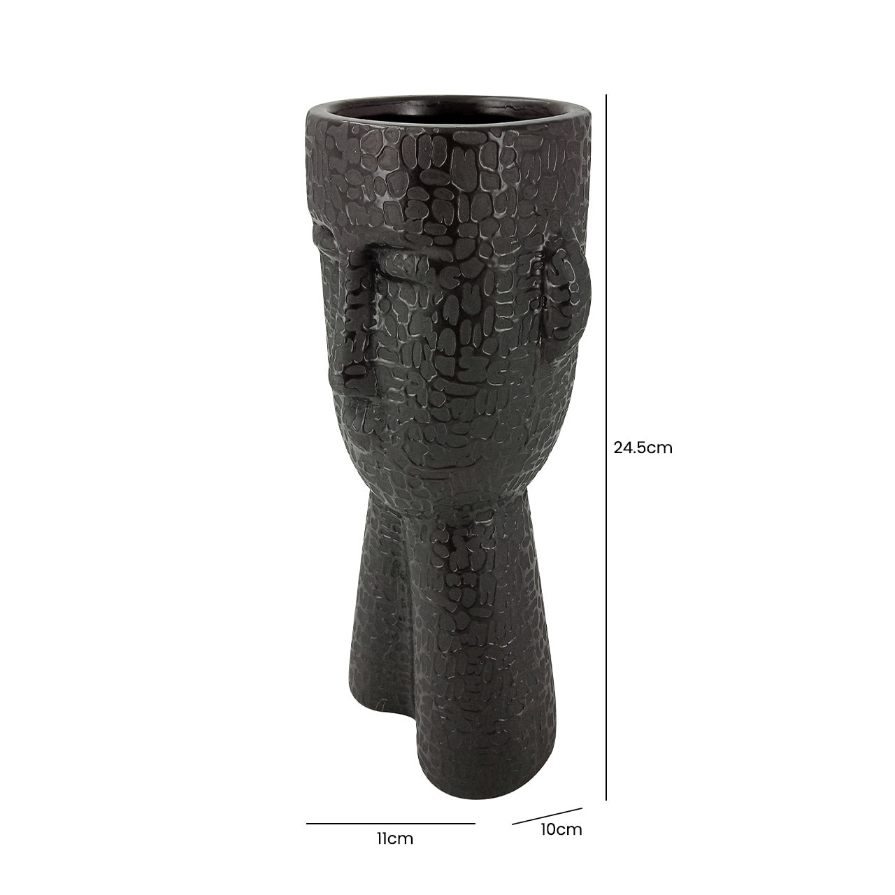 Add a bold artistic touch to your interiors with the 24.5cm Black Textured Face Ceramic Vase. Featuring a sleek black exterior with a unique textured face design, this vase creates a visually striking and contemporary accent for any room. Crafted with meticulous attention to detail, it adds depth, dimension, and intrigue to your home décor.