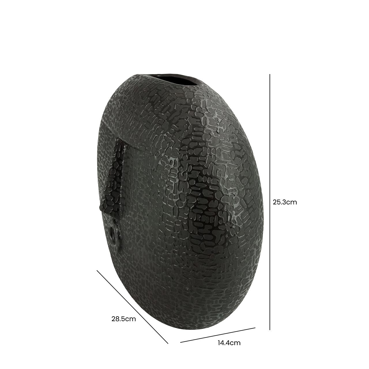 Add a modern artistic touch to your home with the 25.3cm Black Textured Round Face Ceramic Vase. Featuring a sleek black exterior with a textured round face design, this vase creates a visually striking centrepiece that enhances any room. Crafted with meticulous attention to detail, its unique texture adds depth and contemporary flair.