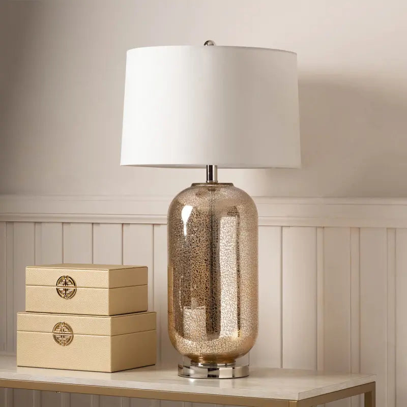 Champagne Mercury Table Lamp with Cream Faux Silk Shade Lina Home