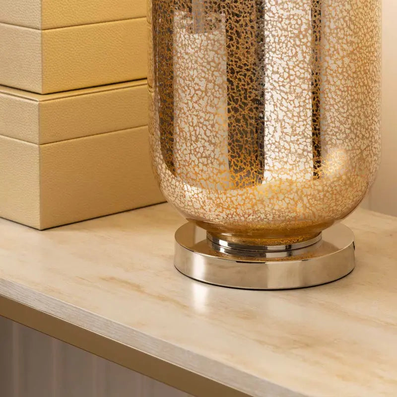Illuminate your home with timeless luxury using the Champagne Mercury Table Lamp with Cream Faux Silk Shade. Designed to impress, this elegant table lamp features a mercury glass base with a sophisticated champagne finish, adding shimmer and refinement to any room. The cream faux silk lampshade softly diffuses light, creating a warm and welcoming ambience perfect for living rooms, bedrooms, or hallways.