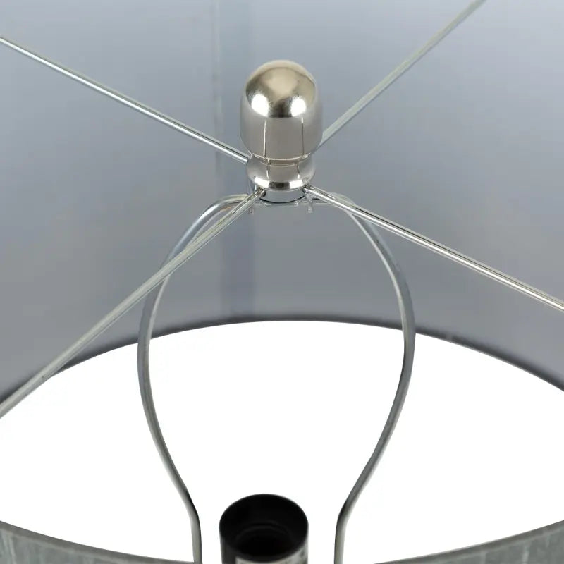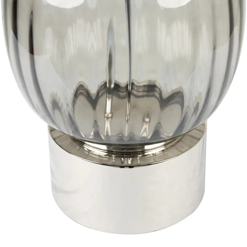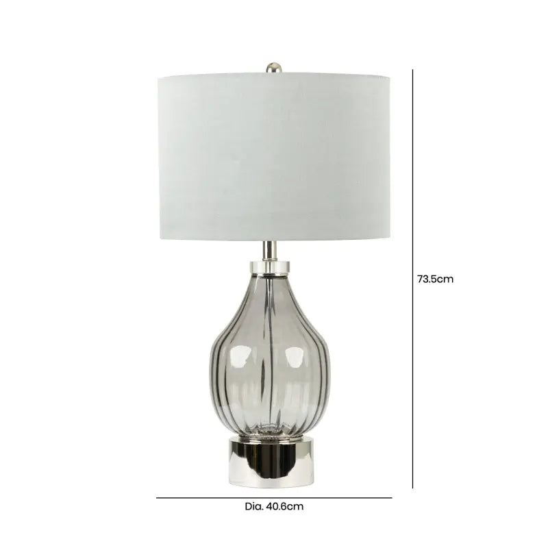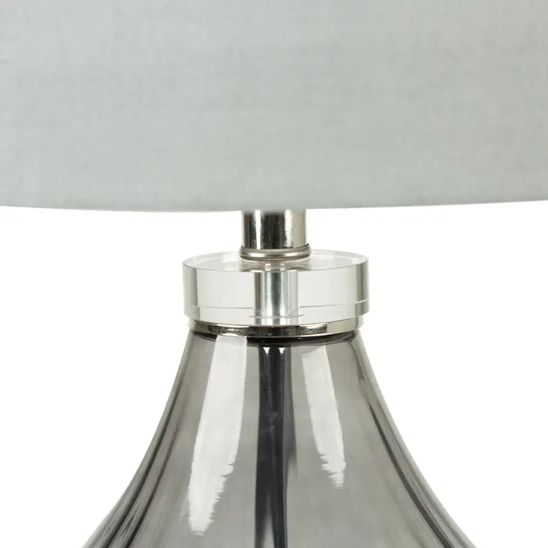 Bring timeless elegance to your interiors with the Clear Black Glass Table Lamp with Grey Faux Silk Shade. This stunning lamp beautifully blends modern sophistication with classic charm, featuring a gracefully curved clear black glass and metal base that adds depth and style to any space. The light grey faux silk shade softens the illumination, creating a warm and refined glow perfect for bedrooms, living rooms, or study areas.