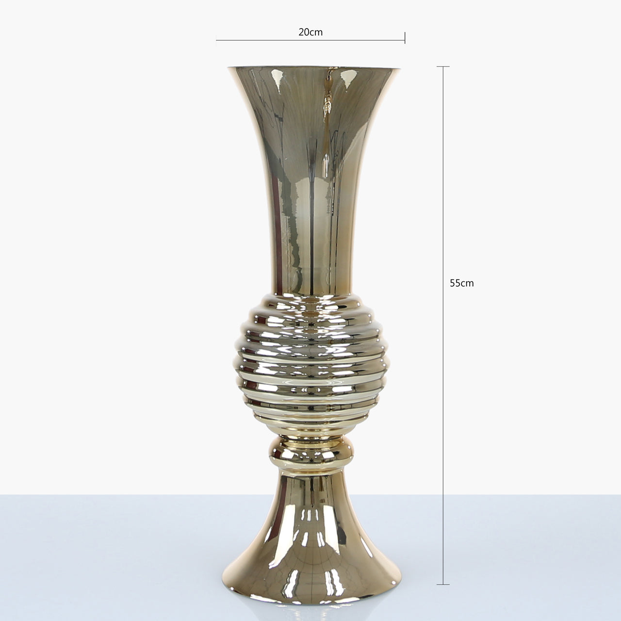 Perfect for displaying fresh or artificial flowers or standing alone as a statement décor accent, this vase enhances a variety of interiors—from modern and contemporary to classic and luxurious. Its sleek design and gleaming surface make it a timeless addition to your living space, dining table, or console.