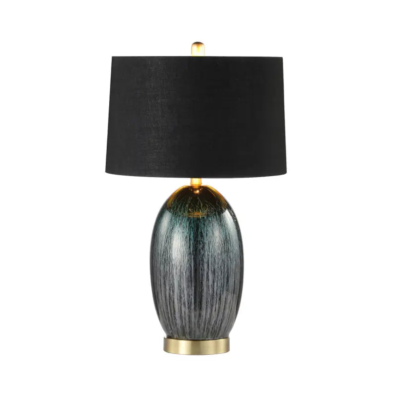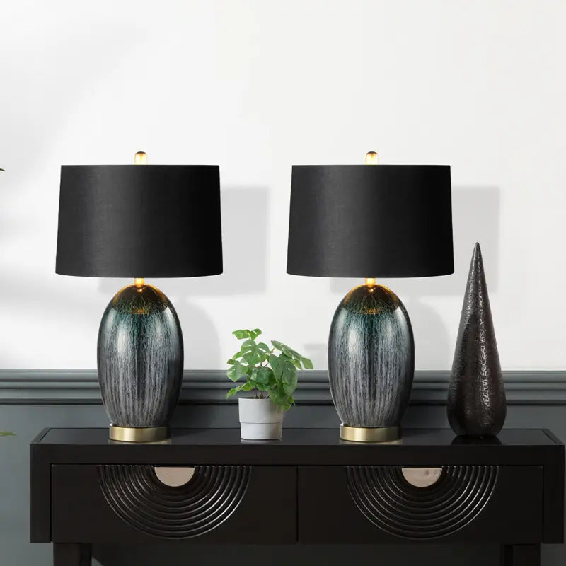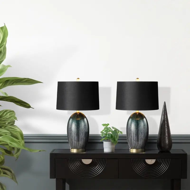 Green Glass with Black Linen Shade Table Lamp Lina Home