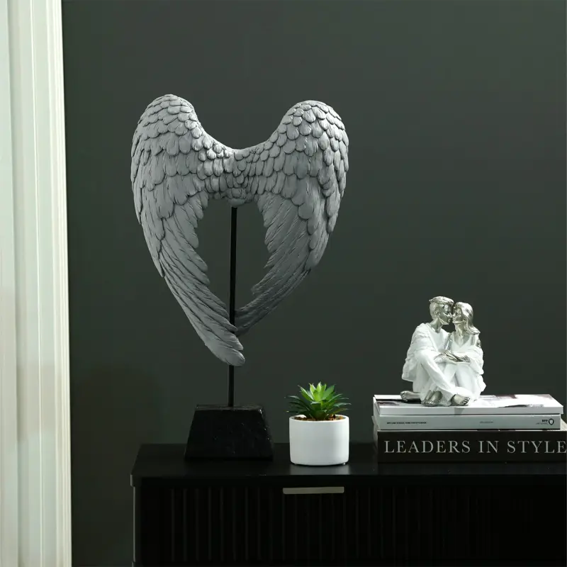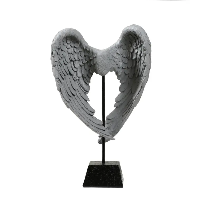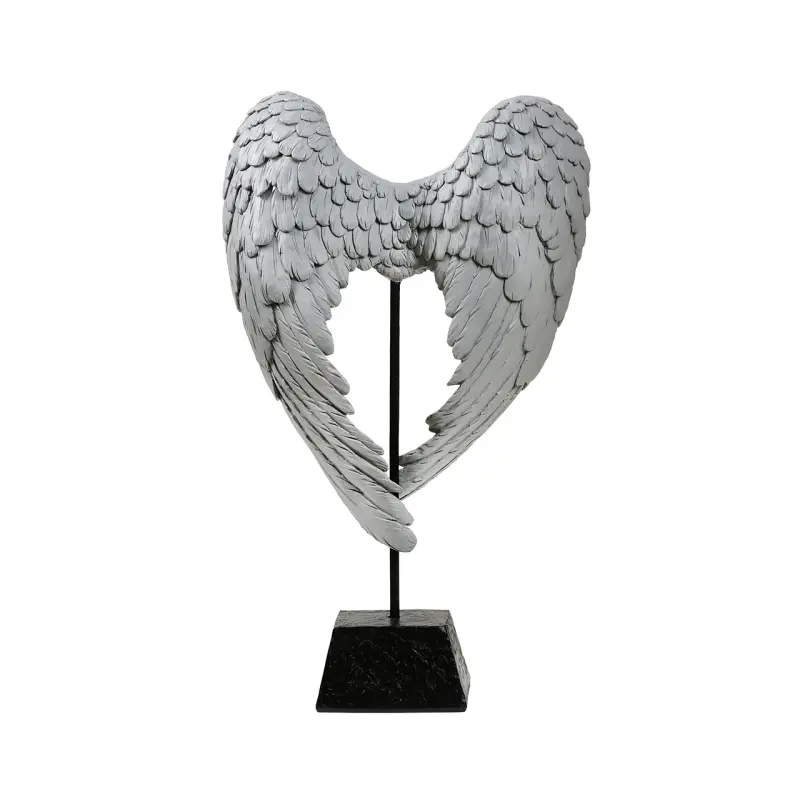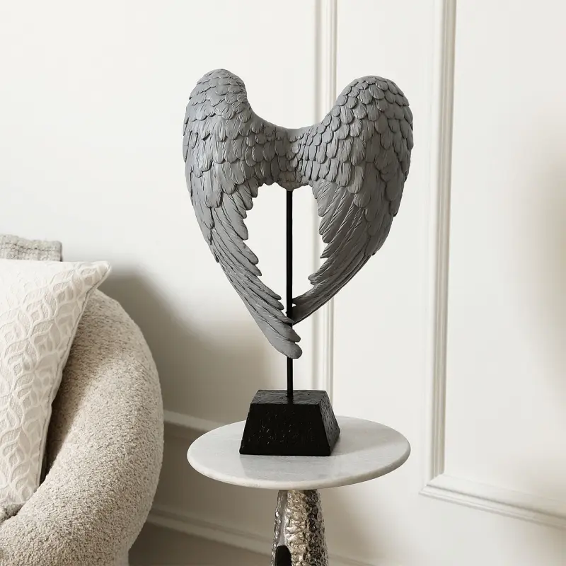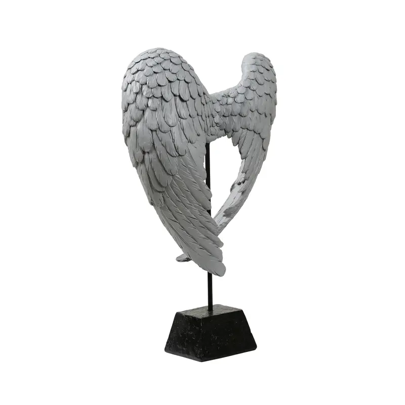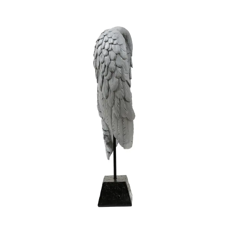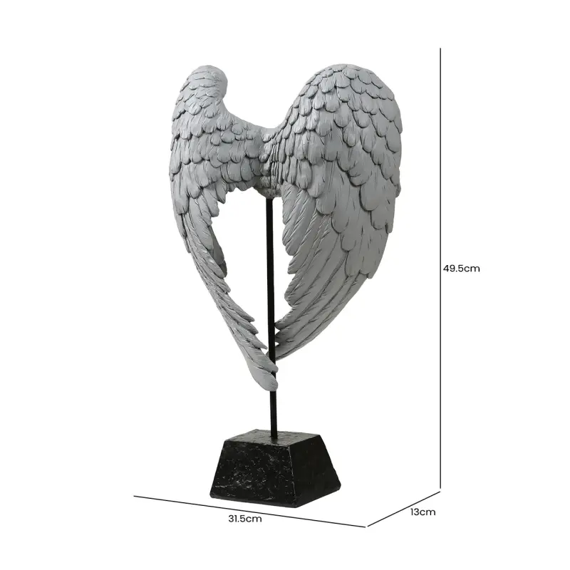 Bring quiet symbolism and refined texture to your space with the 49.5 cm Grey Angel Wings Décor. Sculpted in durable polyresin with intricate feather detail, the softly weathered grey finish adds depth and serenity, pairing effortlessly with modern, rustic or classic schemes. Mounted on a sturdy black base, it creates a poised, gallery-style focal point on consoles, shelves or mantels.
