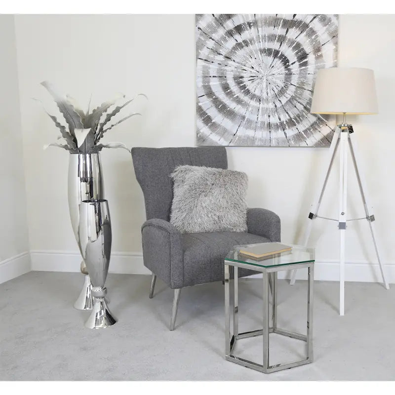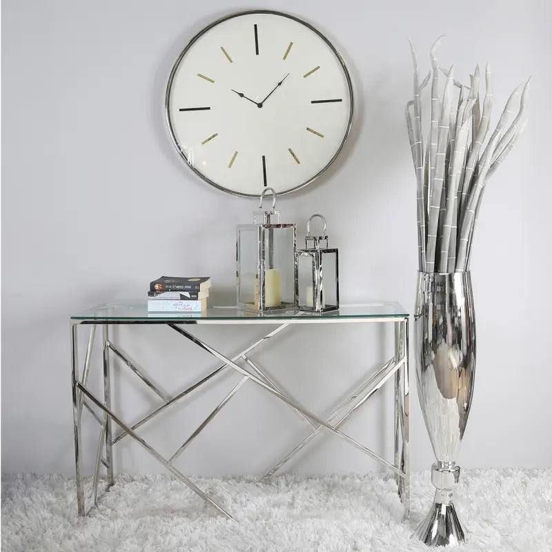 Add a touch of sophistication and modern elegance to your home with this Large Silver Glass Vase. Crafted from premium glass with a sleek silver finish, this vase makes a striking centrepiece for living rooms, dining tables, or entryways. Its reflective surface enhances light and adds a luxurious feel to any space.