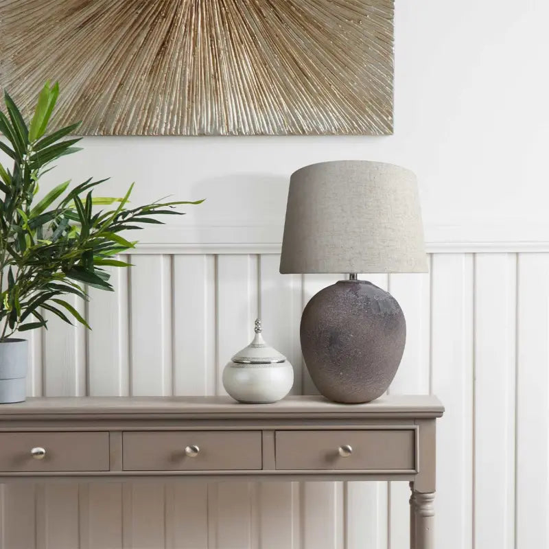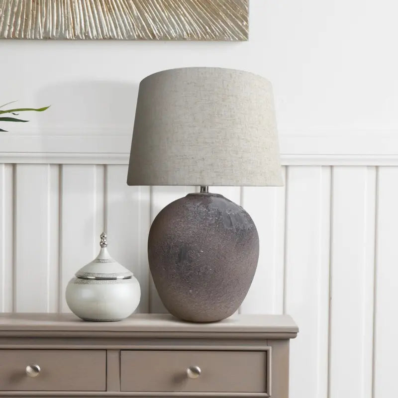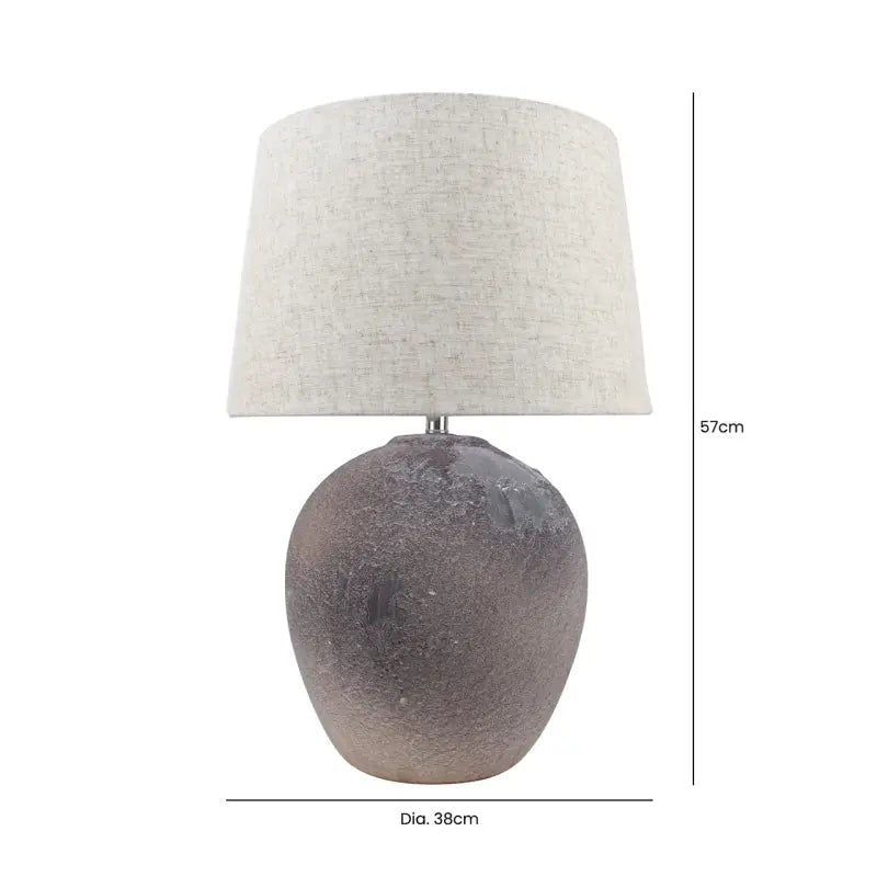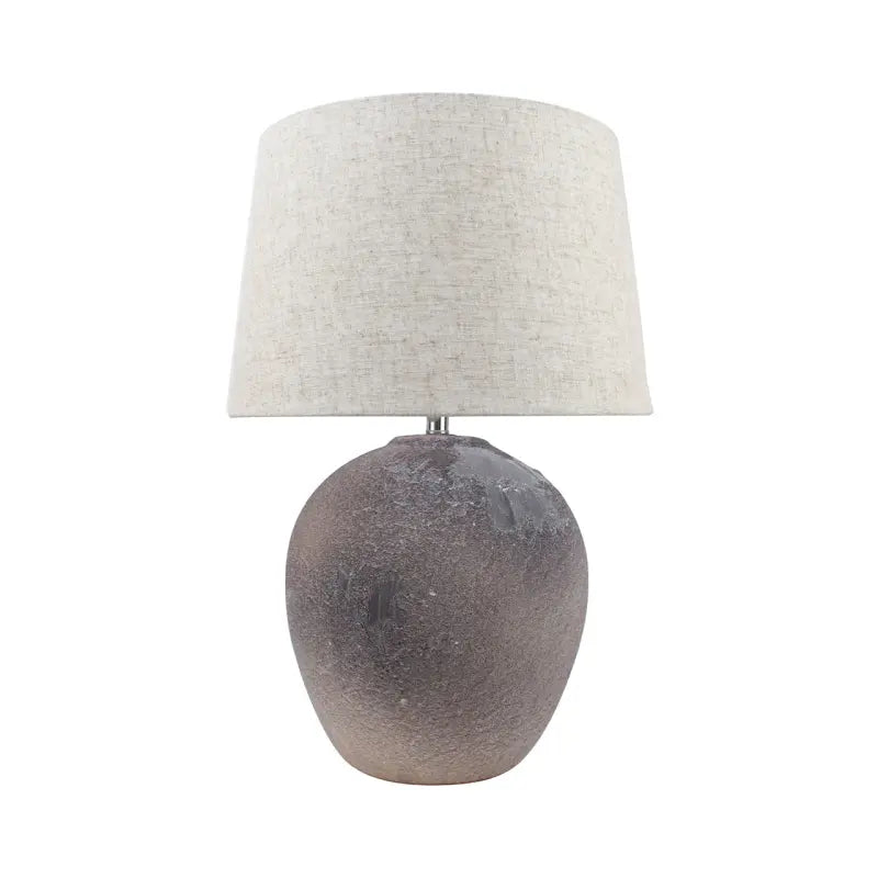 Light Brown Stone Finish Table Lamp with Natural Linen Shade