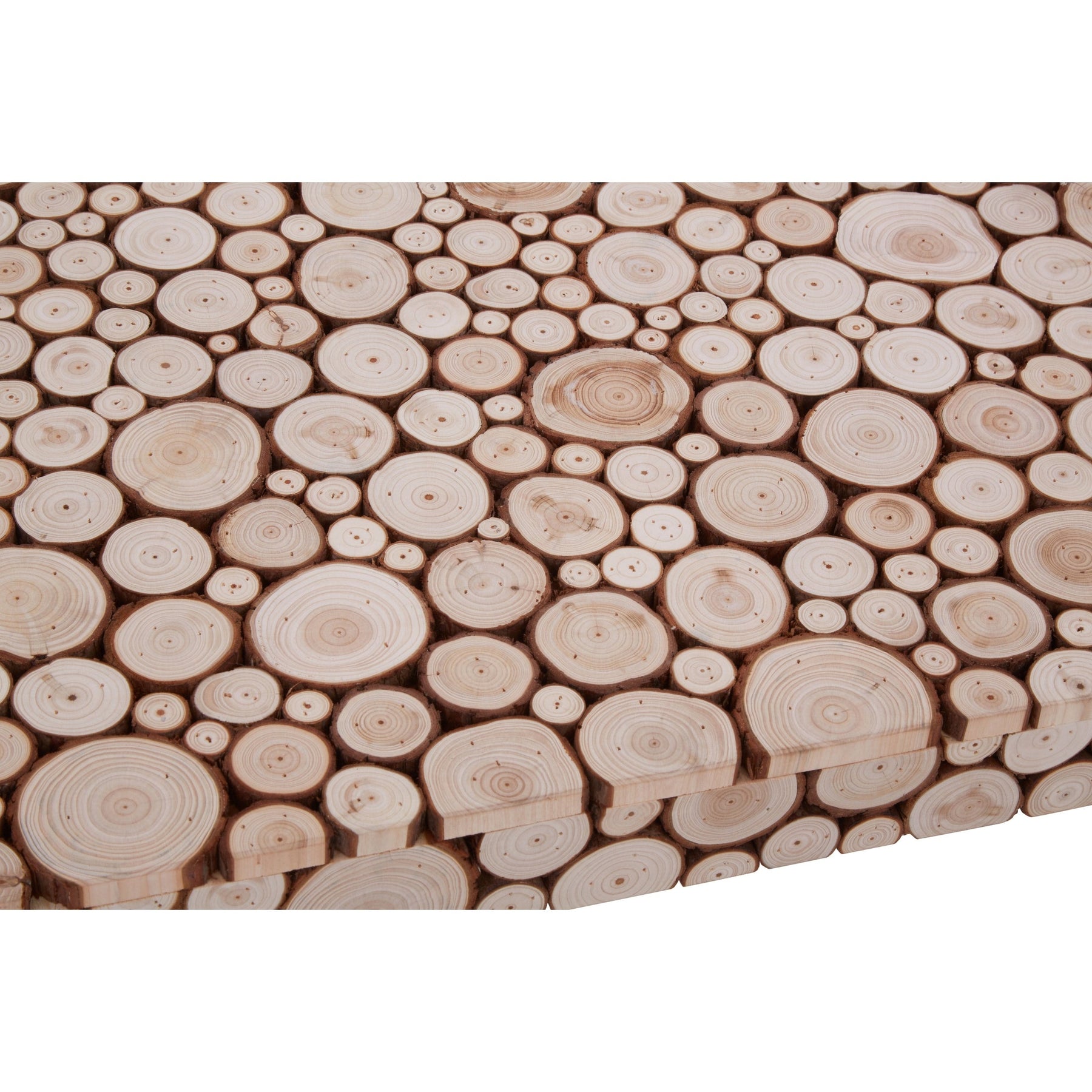 The Lucera Coffee Table blends mid-century lines with rustic texture. Crafted from durable fir wood, the rectangular tabletop is formed from hand-cut discs for a distinctive, tactile surface—so every piece feels unique. A gently distressed finish highlights the natural grain and brings warmth to your living space.