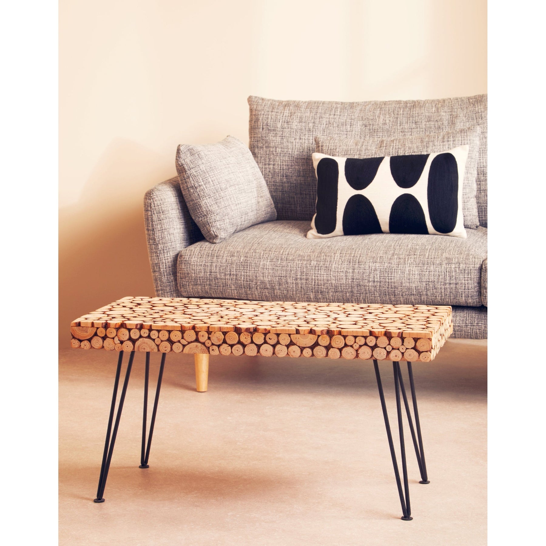 Sturdy black hairpin legs keep the profile light while offering reliable support. Ideal for books, a tray and everyday essentials, this wooden coffee table anchors modern or eclectic interiors without feeling heavy—easy to style, practical to live with.