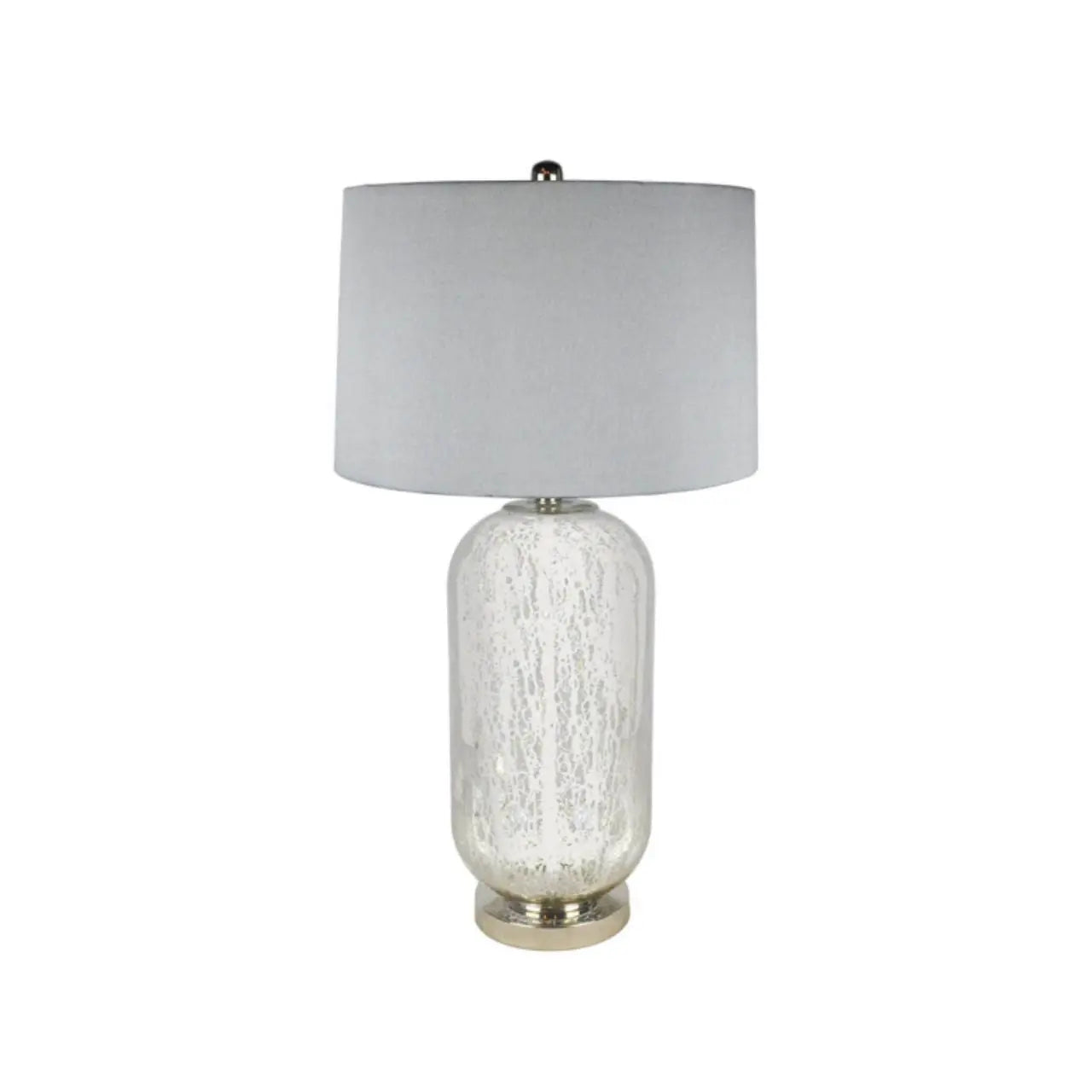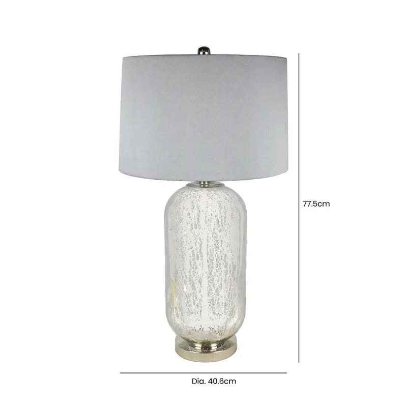 Bring a touch of modern sophistication to your space with the Silver Mercury Glass Table Lamp with Grey Silk Shade. Featuring a stunning mercury glass base in a lustrous silver finish, this lamp exudes contemporary charm and timeless elegance. The grey silk lampshade complements the shimmering glass perfectly, casting a soft, ambient glow that enhances the mood of any room.