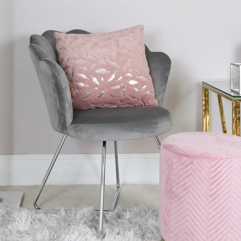 Elevate your interiors with the Pink and Gold Faux Fur Feather Cushion, a luxurious and playful accent that brings sophistication and charm to any room.