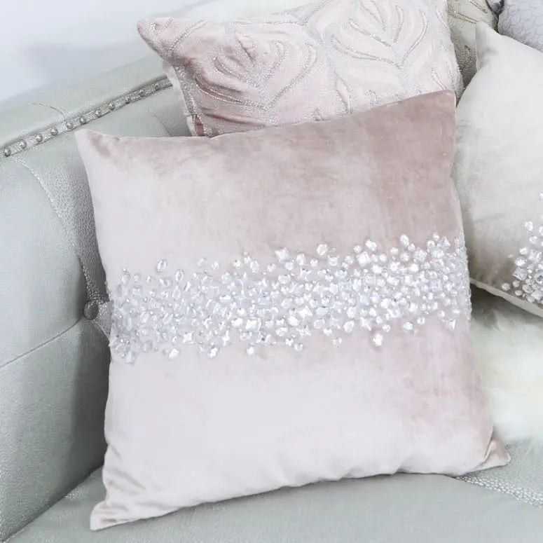 Elevate your home décor with the Pink Velvet Stone Beaded Cushion, a chic and luxurious accessory that adds texture, colour, and refinement to any space.