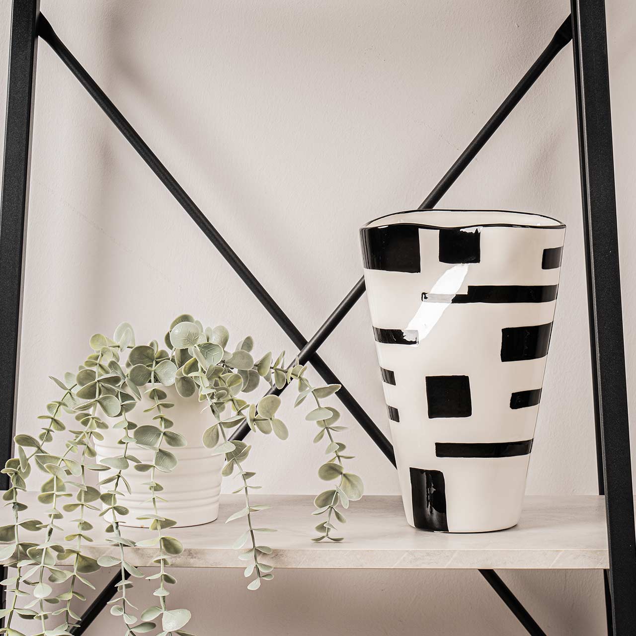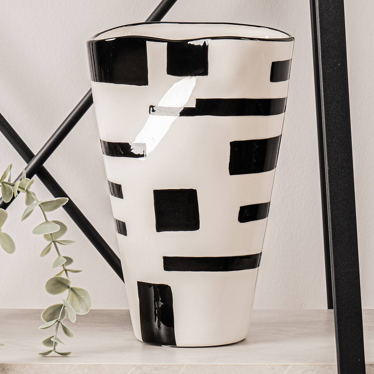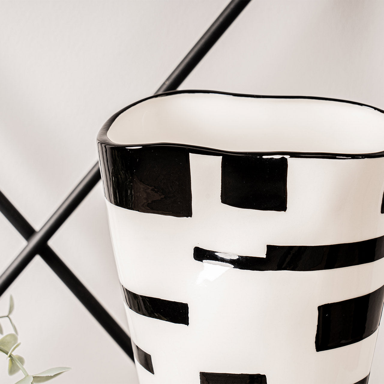 Add a touch of modern sophistication to your interiors with the 23.7cm White and Black Ceramic Vase. Featuring a pristine white ceramic body accented with bold black details, this vase creates a striking visual contrast that effortlessly elevates any space. Its smooth, glossy finish exudes refinement, while the contemporary design blends seamlessly with a variety of décor styles.