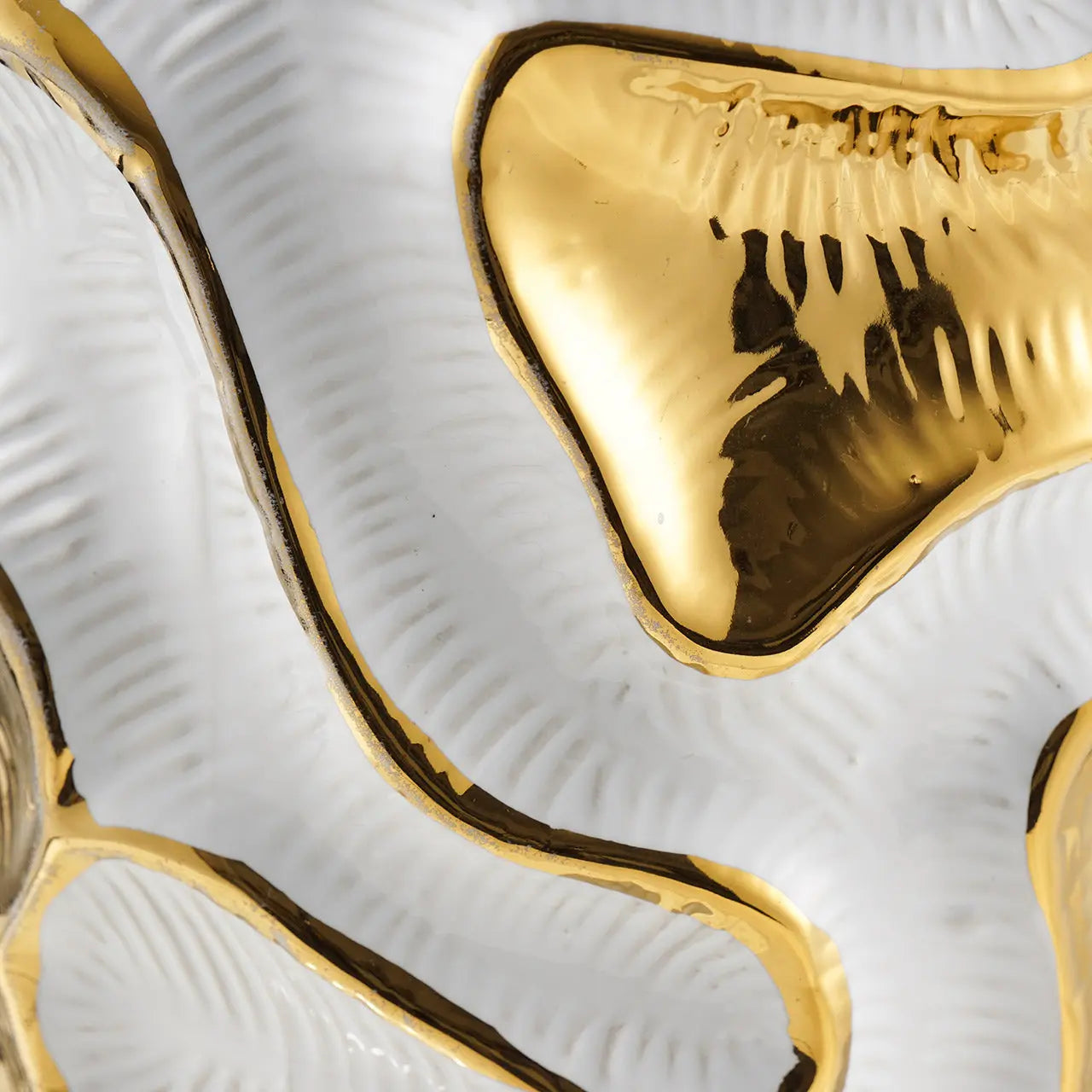 Bring refined beauty and contemporary charm to your space with this white and gold rippled ceramic vase, designed to capture light, texture, and attention.